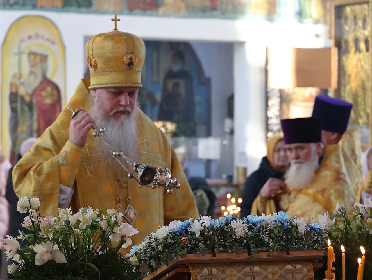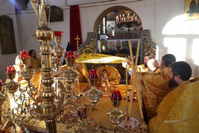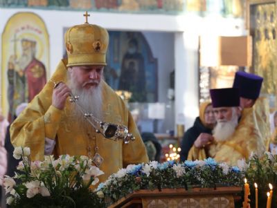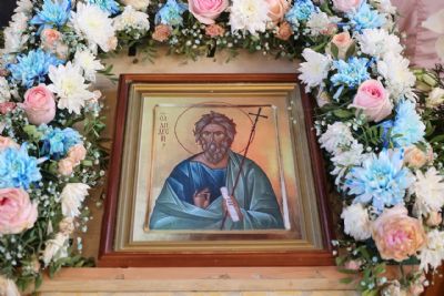 После славления перед иконой Андрея Первозванного епископ Феофан обратился к верующим с проповедью, рассказав о житии и трудах апостола Андрея, который первый из учеников последовал за Христом.