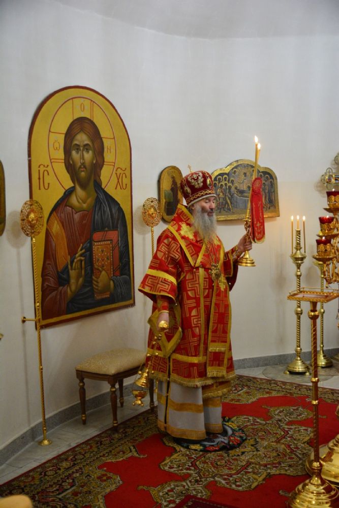 После Божественной литургии прошел крестный ход вокруг храма со чтением Евангелия и кроплением святой водой. Затем митрополит Иоанн вознес молитву великомученице Варваре и обратился к прихожанам с архипастырским словом.