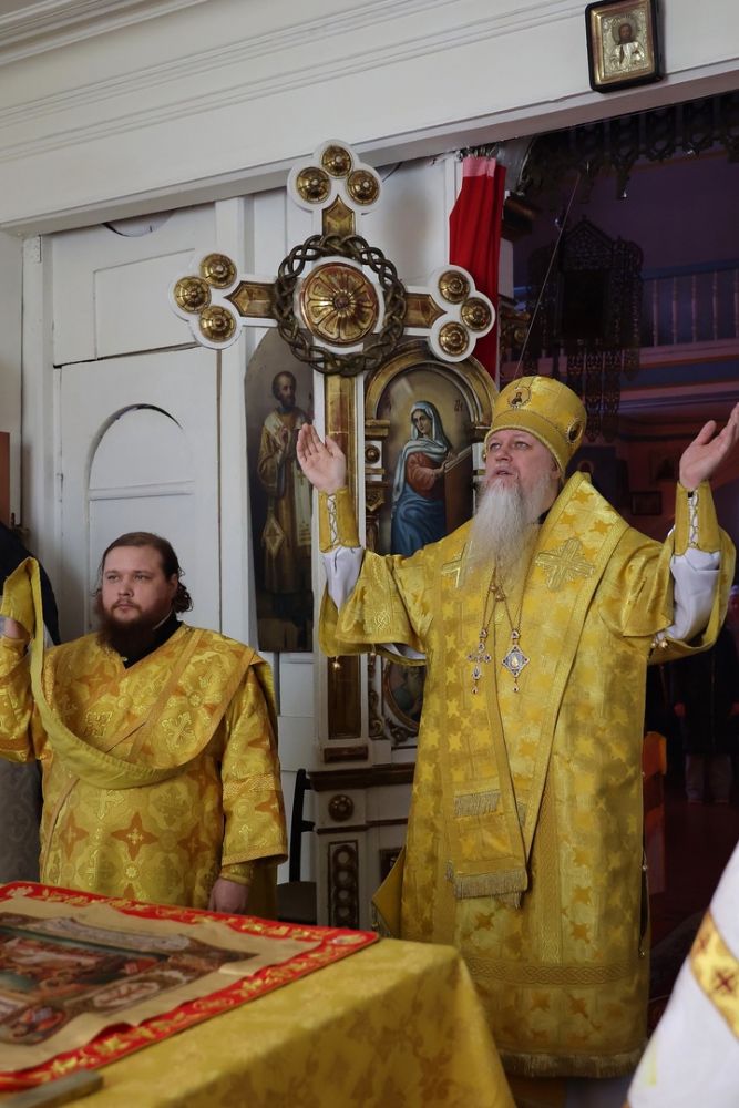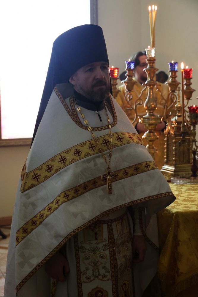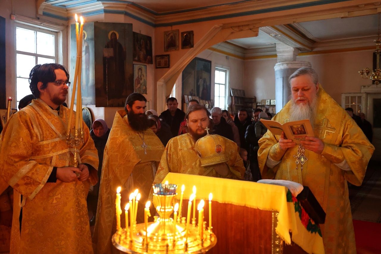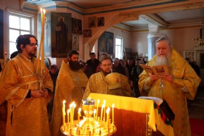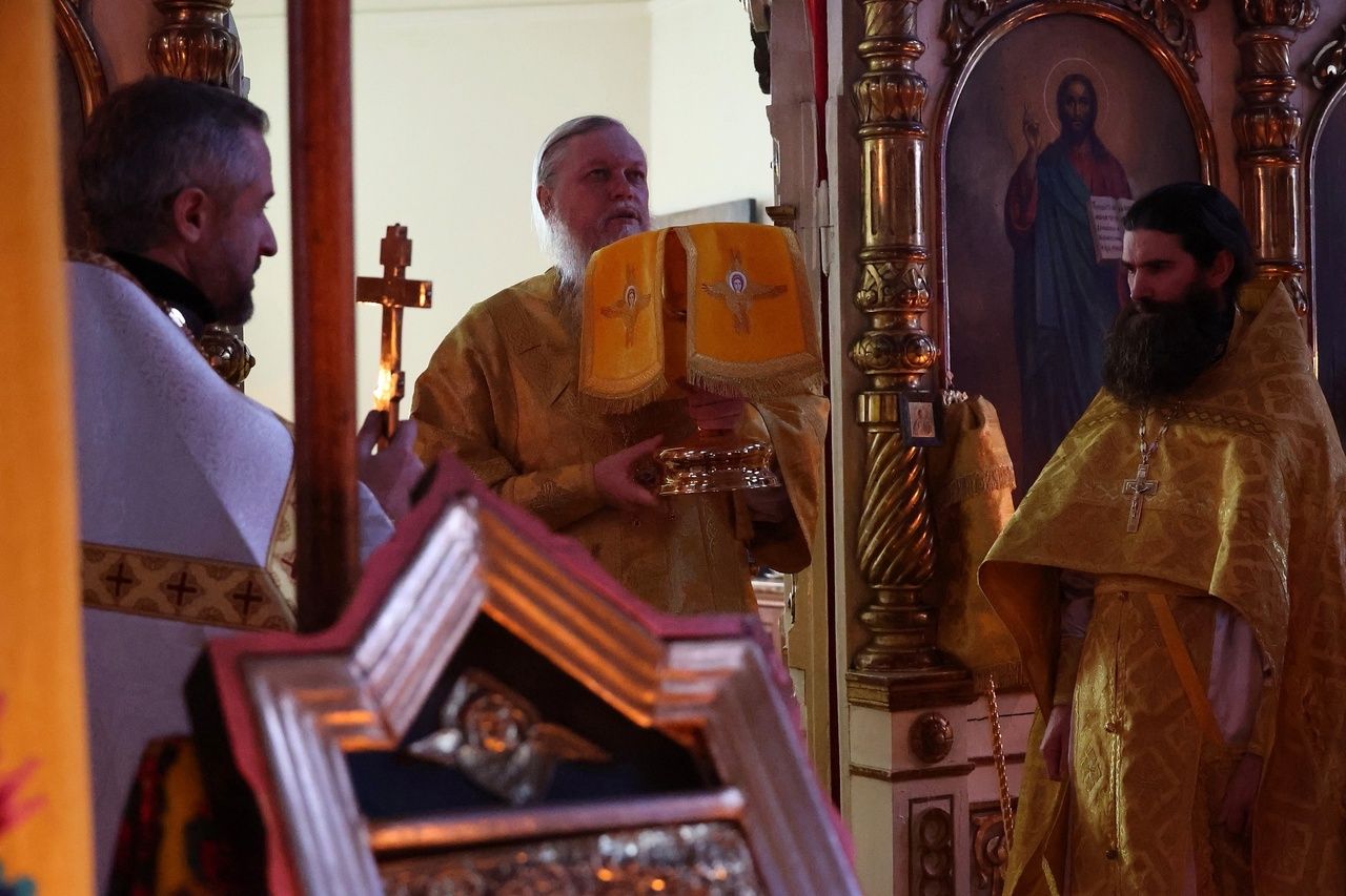 Его Преосвященству сослужили клирики епархии: иерей Иоанн Белинский, иеромонах Авель Крашенинников, иерей Алексей Пидвысоцкий, диакон Иоанн Захаров. Песнопения исполнял хор храма.