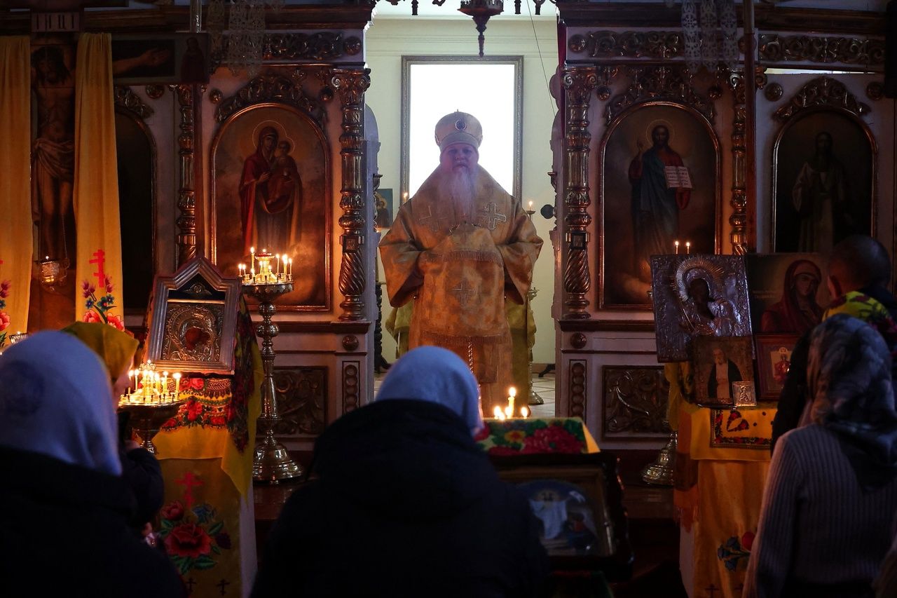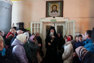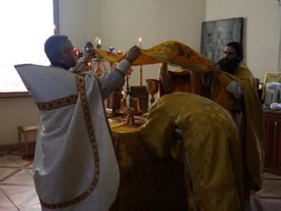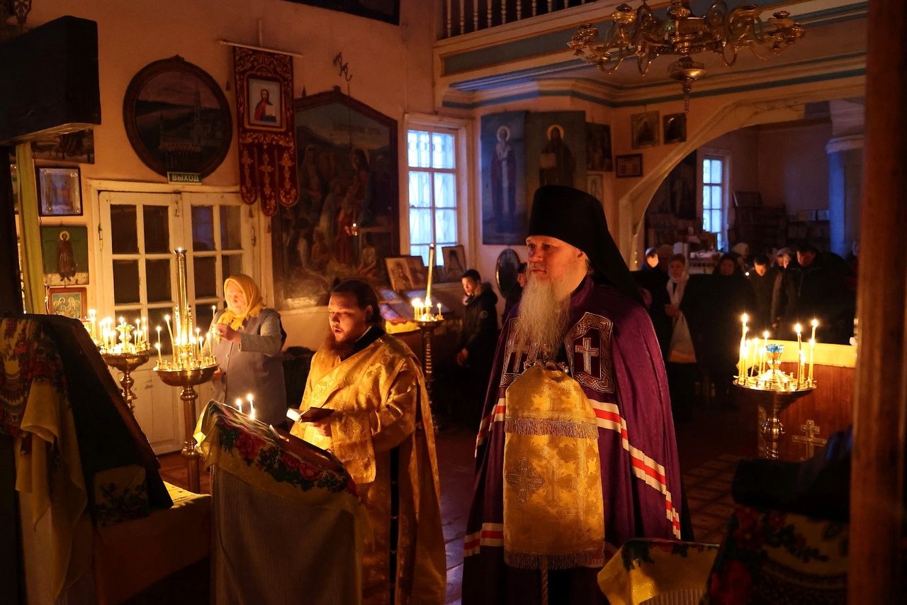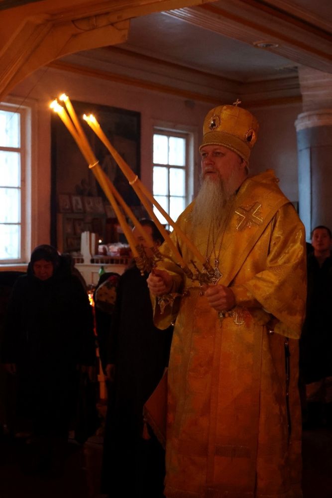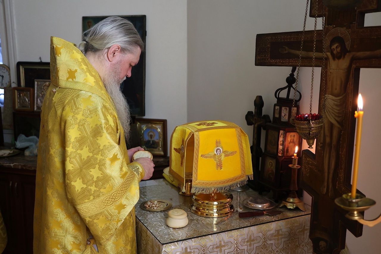 Его Преосвященству сослужили клирики епархии: иерей Иоанн Белинский, иеромонах Авель Крашенинников, иерей Алексей Пидвысоцкий, диакон Иоанн Захаров. Песнопения исполнял хор храма.