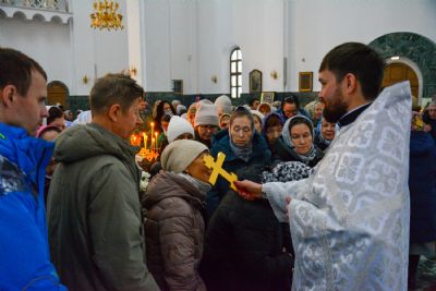 Владыке сослужили секретарь Йошкар-Олинского епархиального управления иеромонах Серафим (Пасанаев), ключарь собора протоиерей Сергий Поглазов, клирики собора и протодиакон Михаил Козловский. Песнопения исполнял детско-юношеский хор «Благовест» под руководством регента Татьяны Черновой.