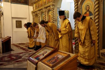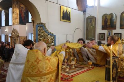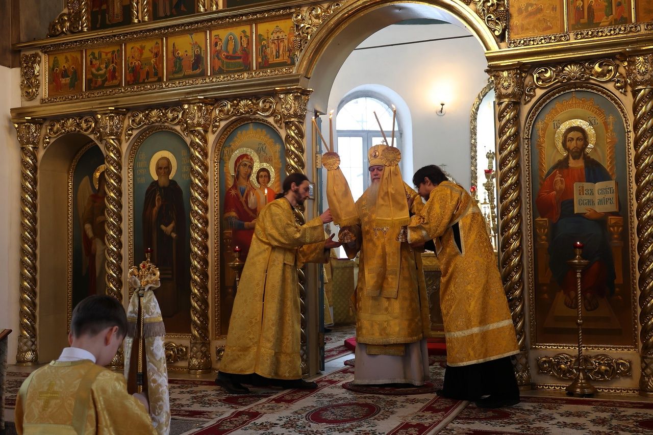 Божественную литургию возглавили два архиерея – митрополит Йошкар-Олинский и Марийский Иоанн и епископ Волжский и Сернурский Феофан. Архипастырям сослужили клирики Никольского собора иеромонах Авель Крашенинников, иереи Александр Усков, Иоанн Белинский, Сергий Першаков, Владимир Тимофеев, Димитрий Карпетченко, диакон Иоанн Захаров и клирик Йошкар-Олинской епархии протодиакон Михаил Козловский.