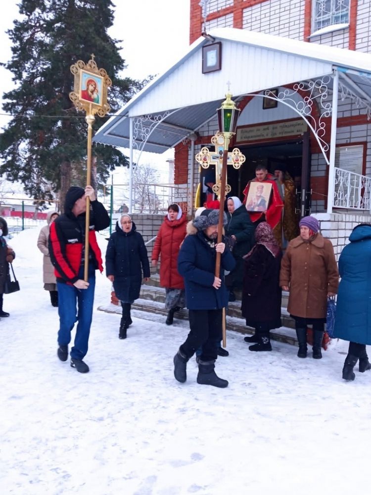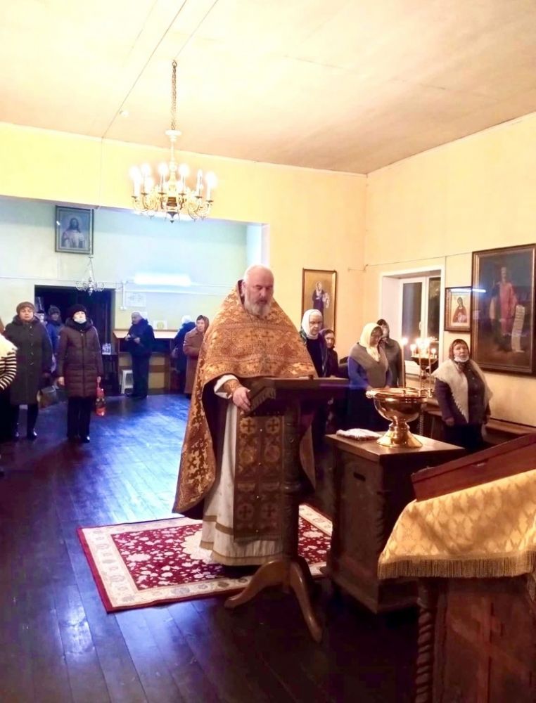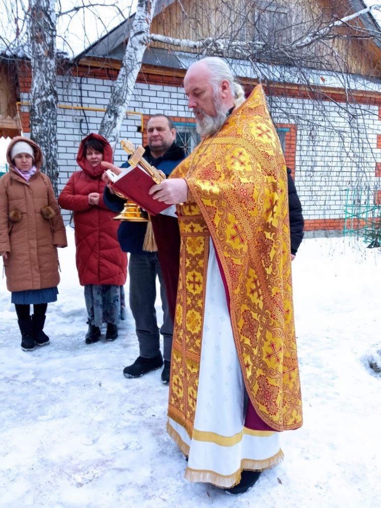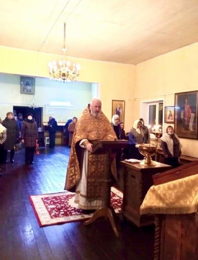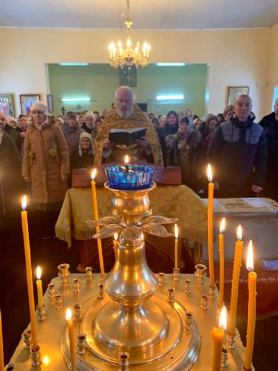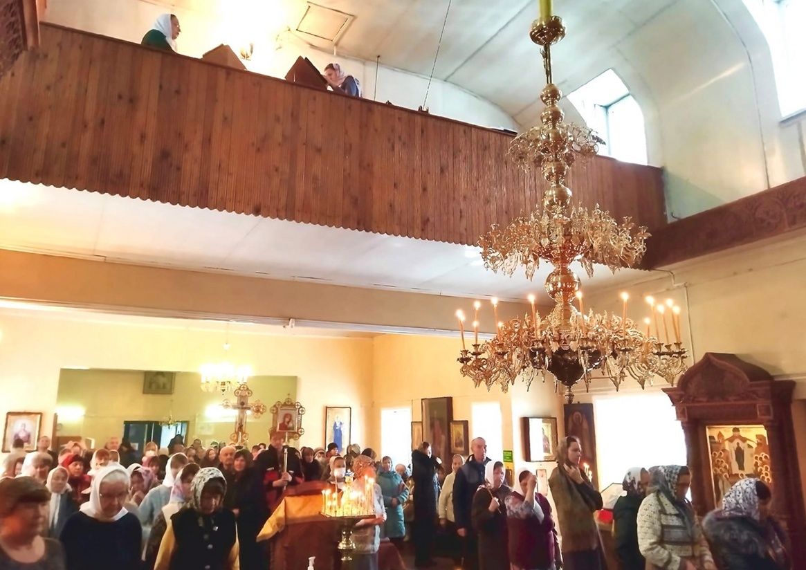 Праздничный день начался водосвятным молебном, далее последовала Божественная литургия, совершил которую клирик храма иерей Александр Сергунин, песнопения исполнял хор храма.