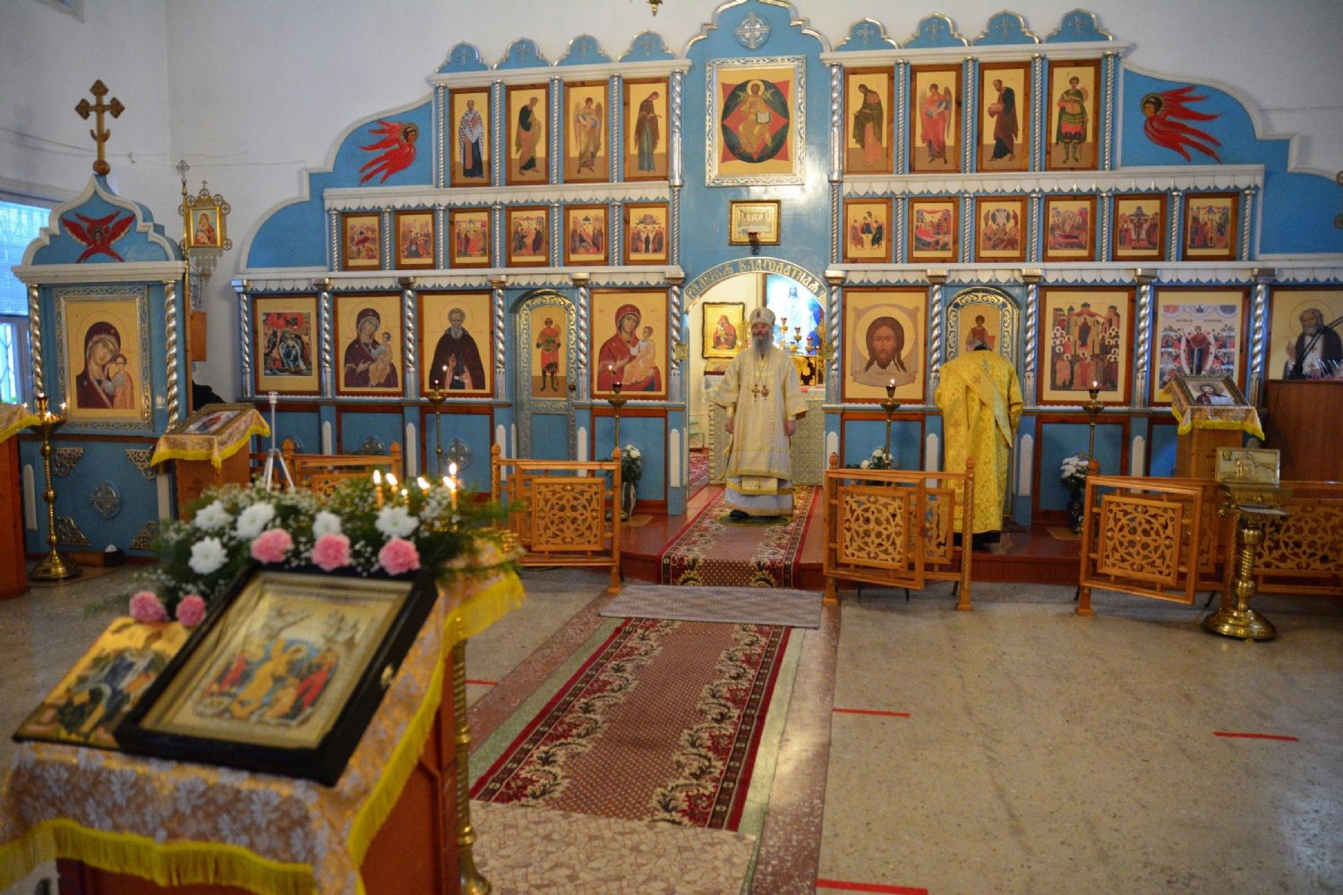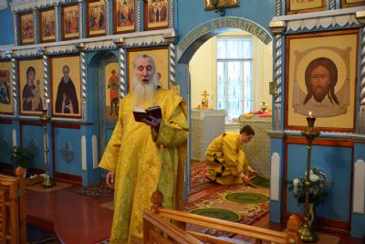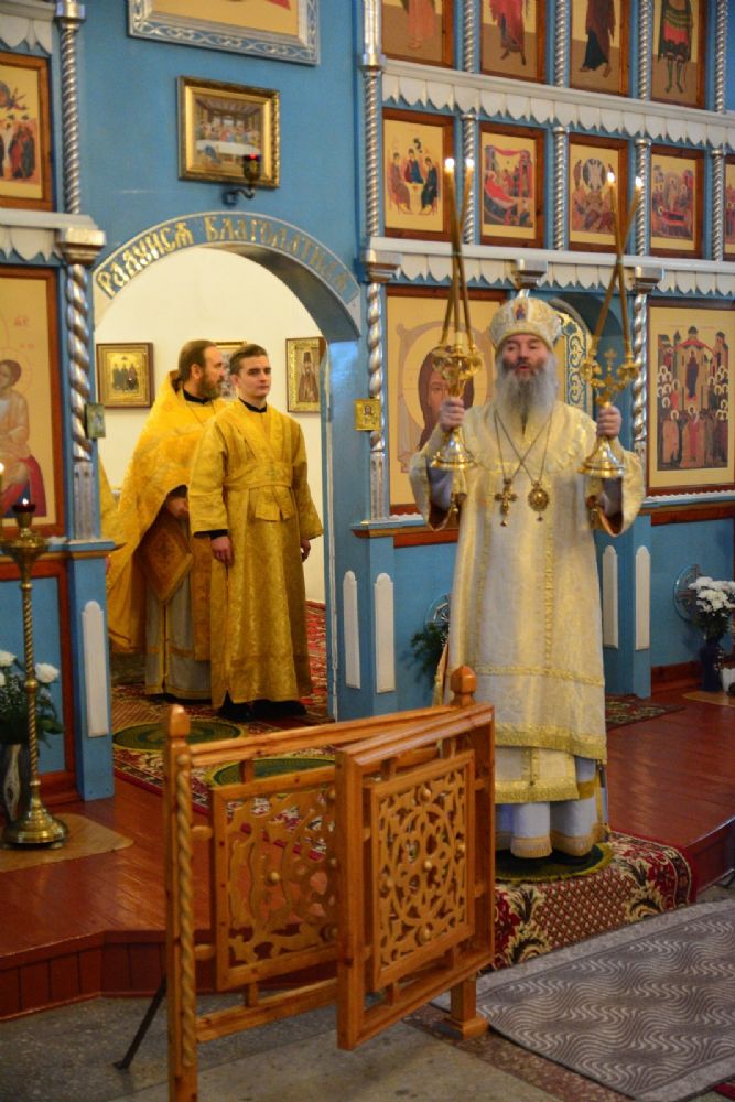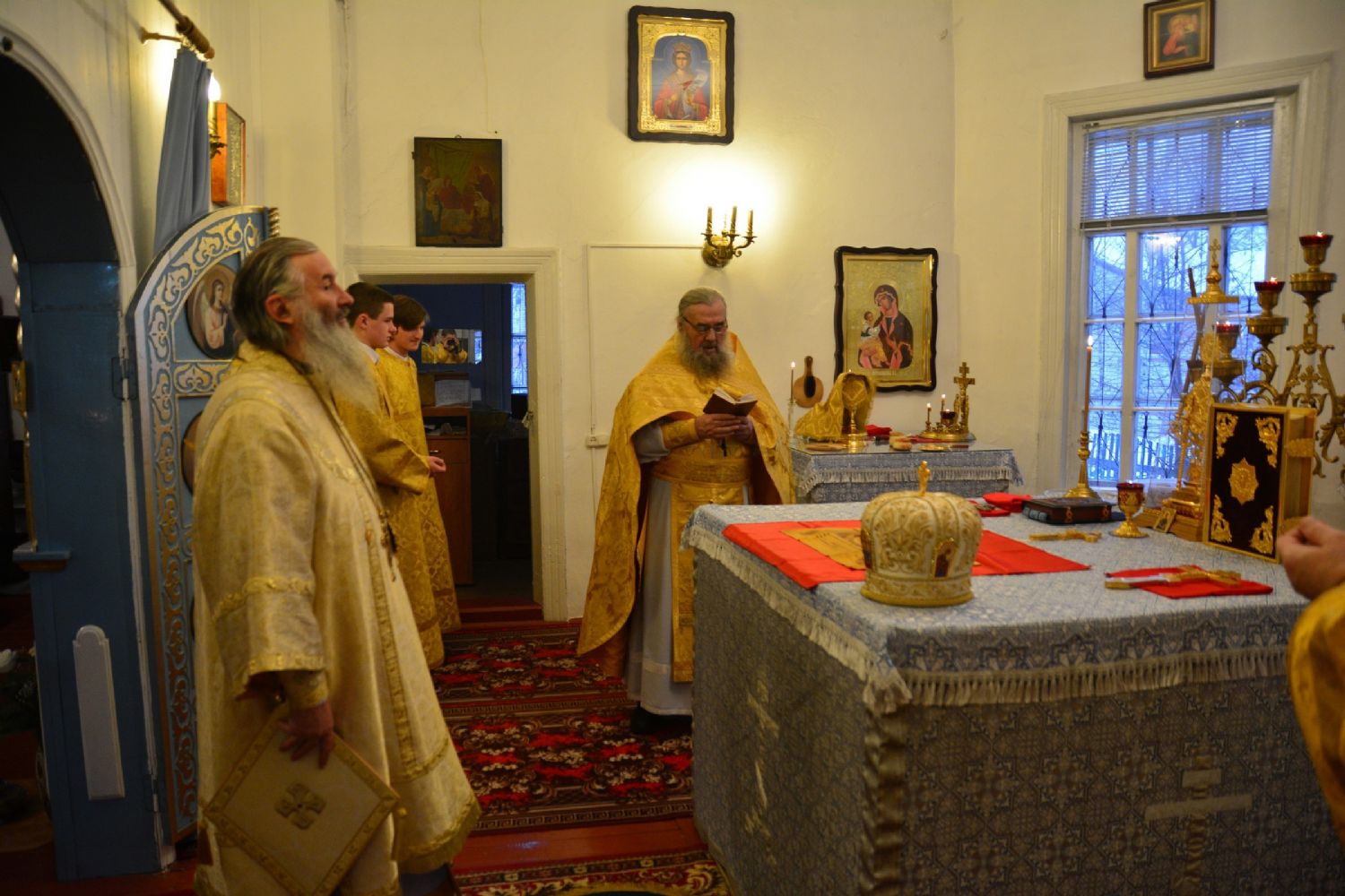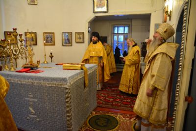 Архипастырю сослужили секретарь Йошкар-Олинского епархиального управления иеромонах Серафим Пасанаев, настоятель храма протоиерей Валентин Пылаев и протодиакон Михаил Козловский.