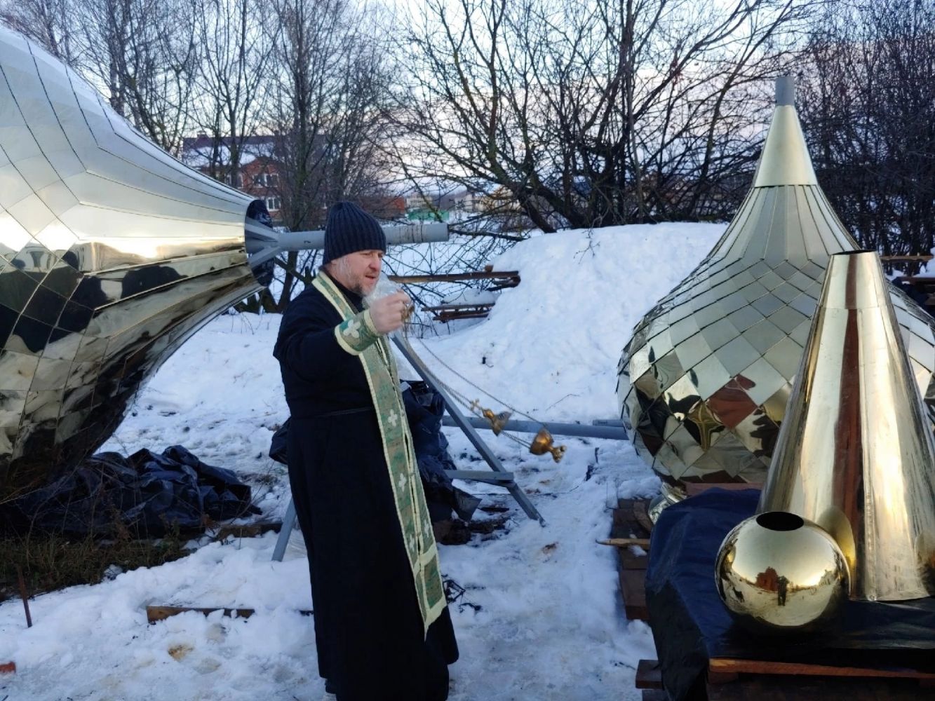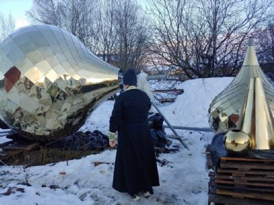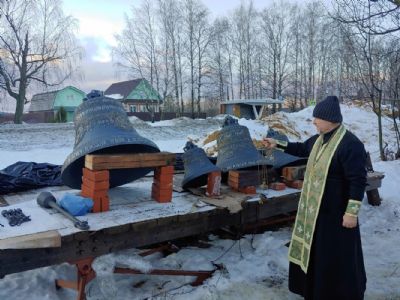 Освящены купола с крестами и колокола Троицкого храма д. Ивановка 2054