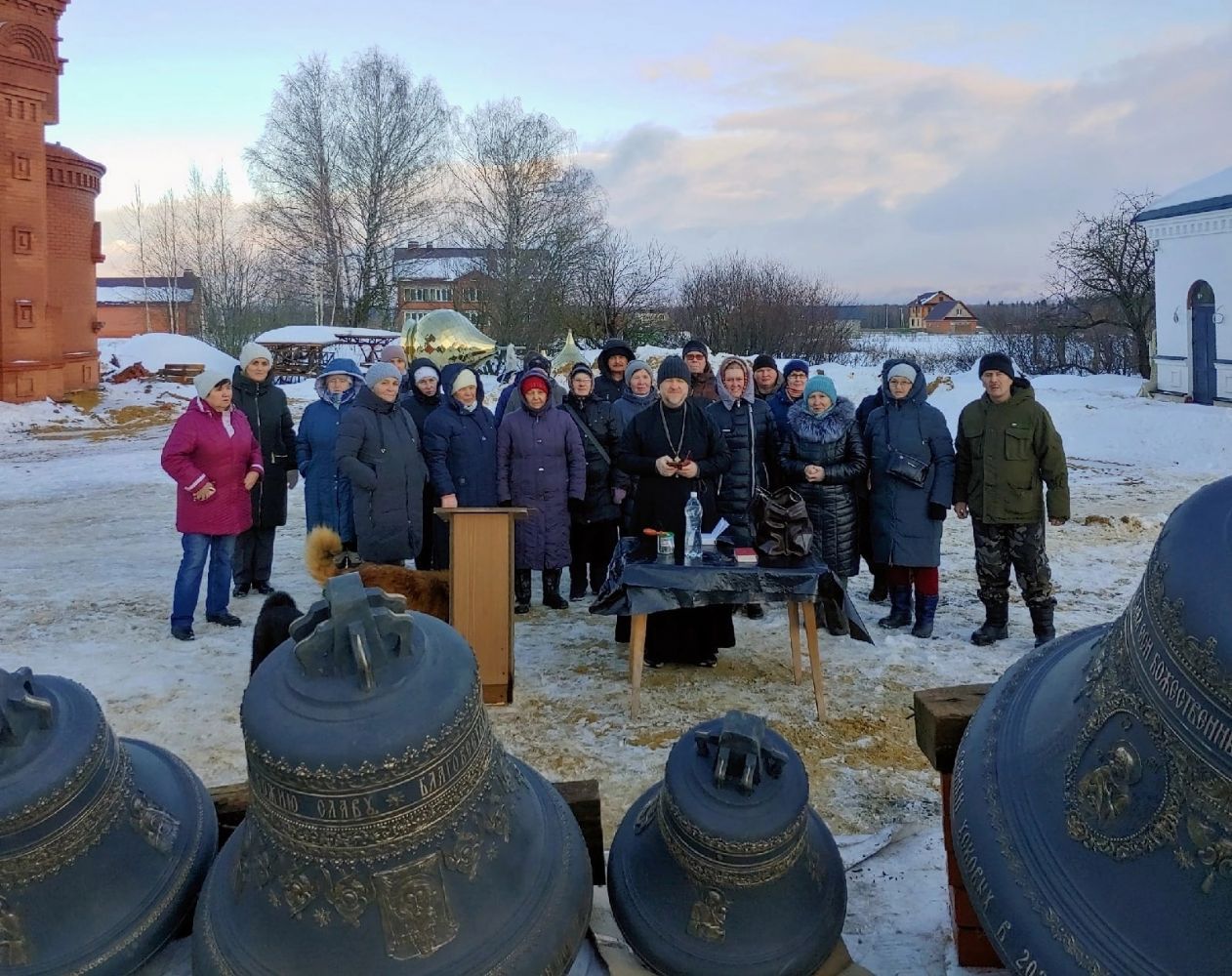 Местные жители радостно собрались на значимое для них событие. Просторный храм поднимается быстрыми темпами, работы держит под контролем староста прихода Сергей Андреевич Малков, служивший ранее в гражданской авиации, а сейчас – член байкерского клуба «Ночные волки».