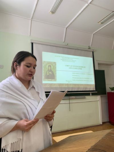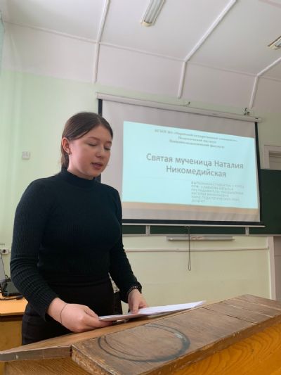 Участники встречи – студенты первого курса – в теплой дружеской обстановке поделились друг с другом знаниями о святых – своих небесных покровителях, их земной жизни по изучению житийных описаний и чудесах, совершаемых по искренним молитвам к ним и ко Господу. Ознакомились с житиями мучениц Веры, Надежды, Любови и матери их Софии, блаженной Ксении Петербургской, мученицы Наталии Никомедийской, преподобной Аполлинарии, мученицы Аллы Готфской, святителя Алексия Московского преподобной Мелании Римляныни, мученицы Иулии Карфагенской.