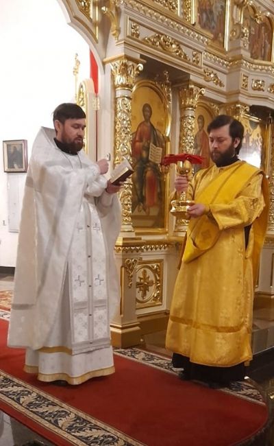 В Воскресенском соборе г. Йошкар-Олы богослужение совершили настоятель иерей Алексей Кирюшкин и клирик собора, руководитель епархиального Общества трезвости иерей Андрей Кочаков.