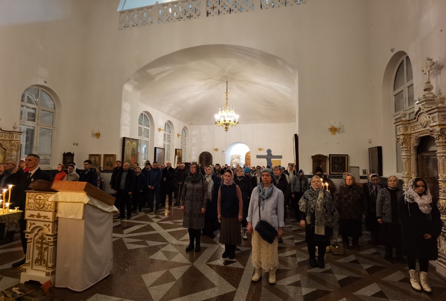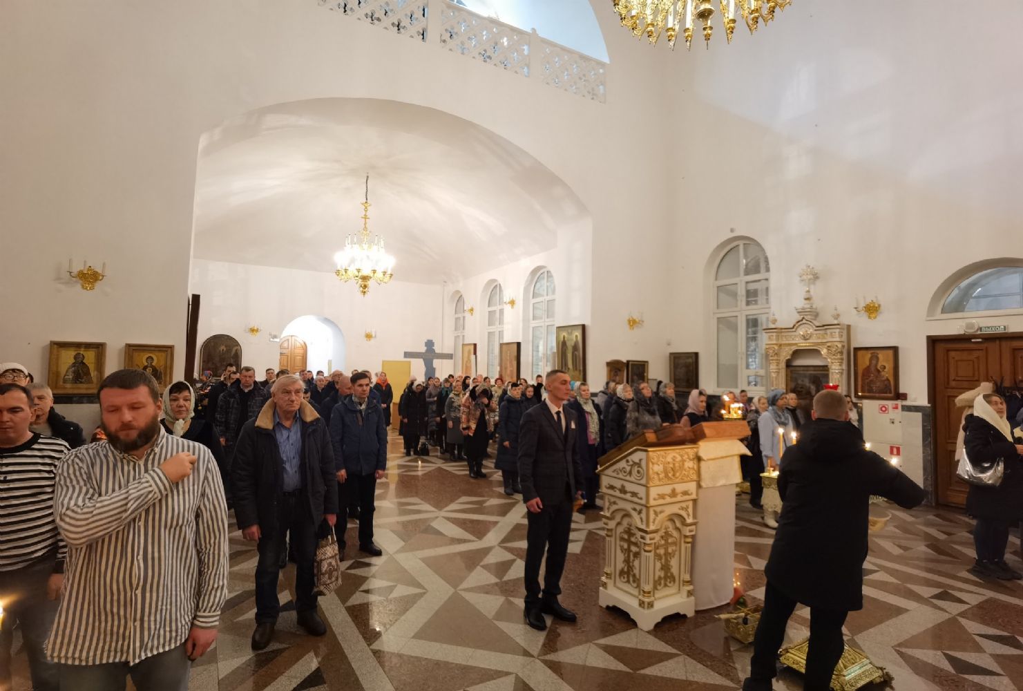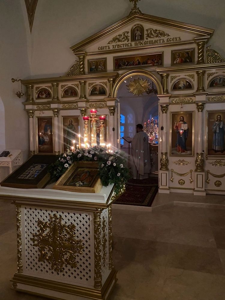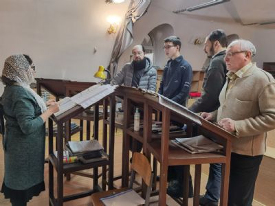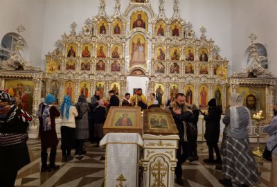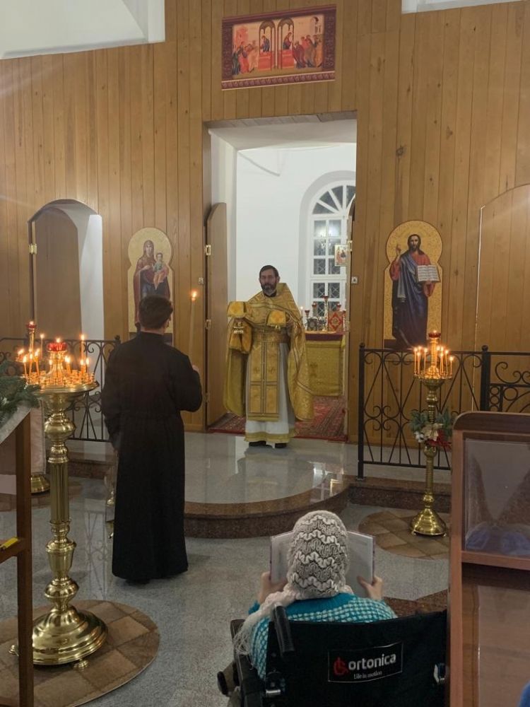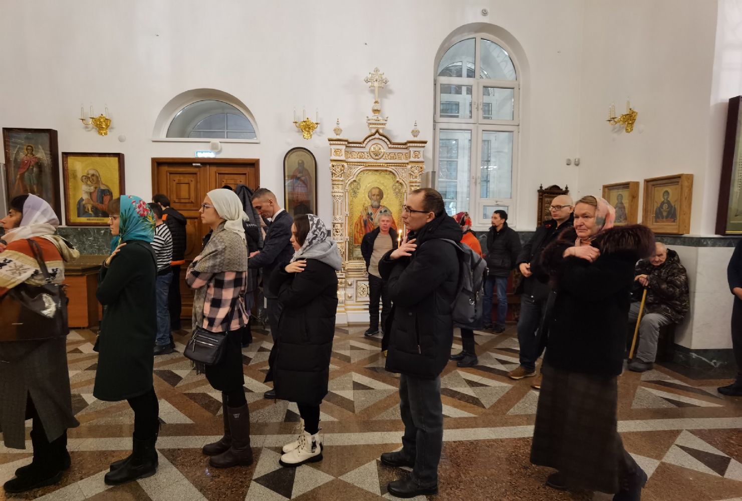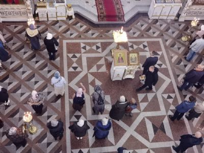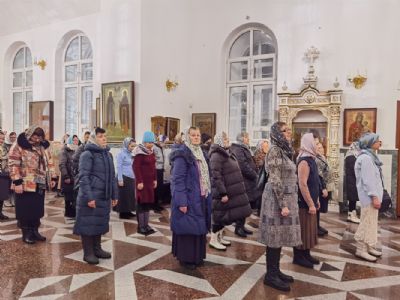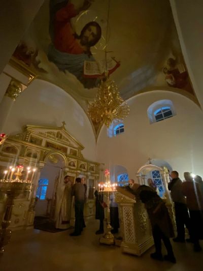 Песнопения исполнял мужской хор Общества трезвости под управлением регента Регины Федосеевой. Знаменный распев создавал особое молитвенное настроение в храме.