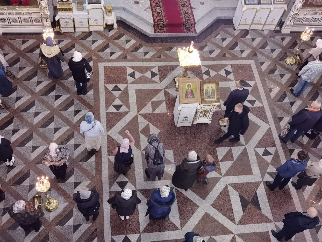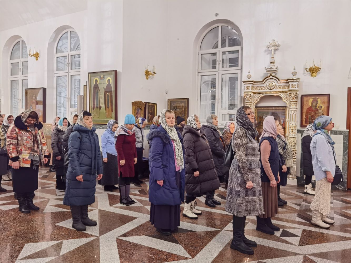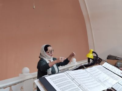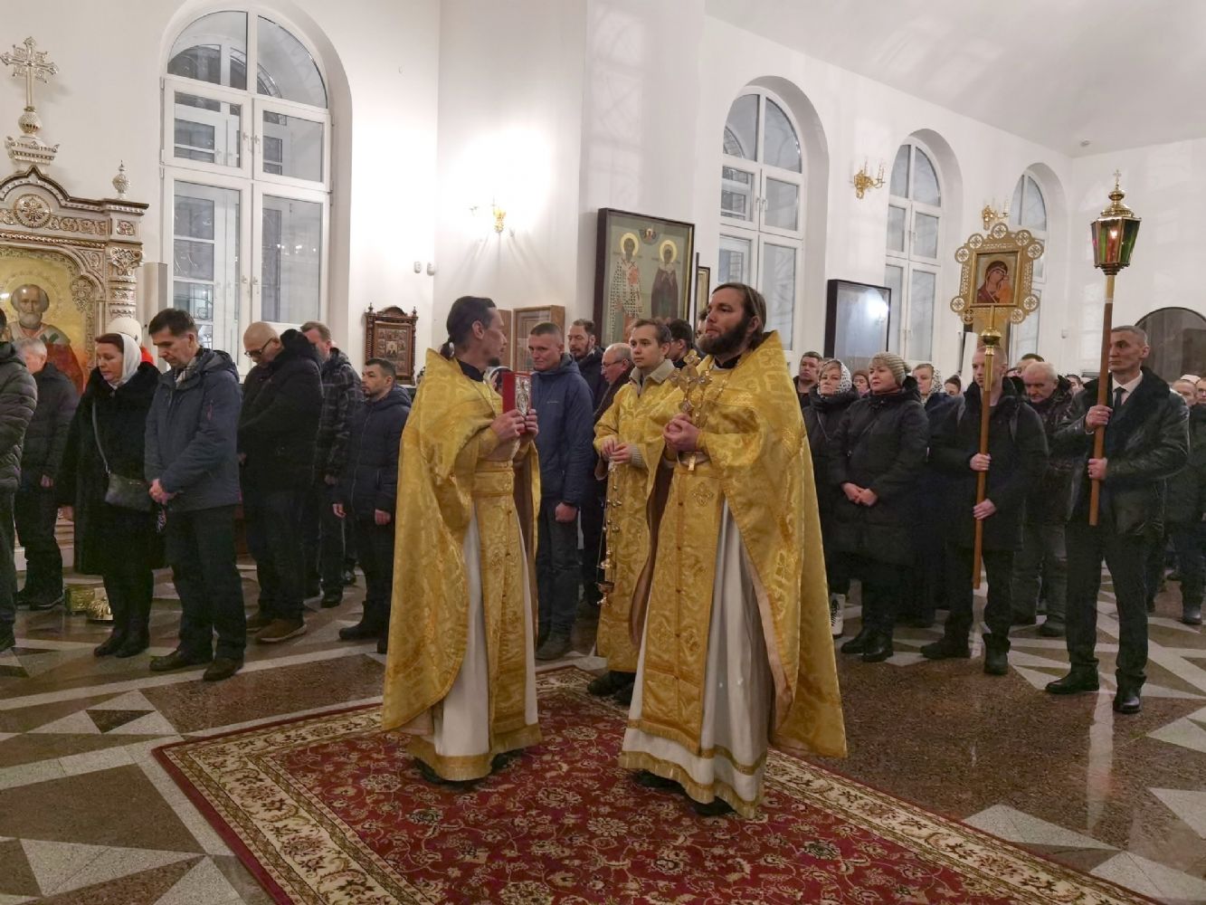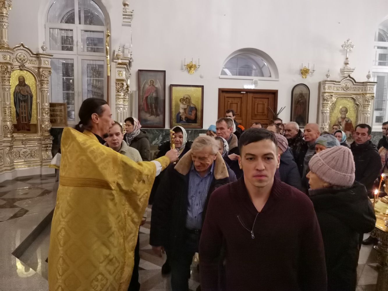 Песнопения исполнял мужской хор Общества трезвости под управлением регента Регины Федосеевой. Знаменный распев создавал особое молитвенное настроение в храме.