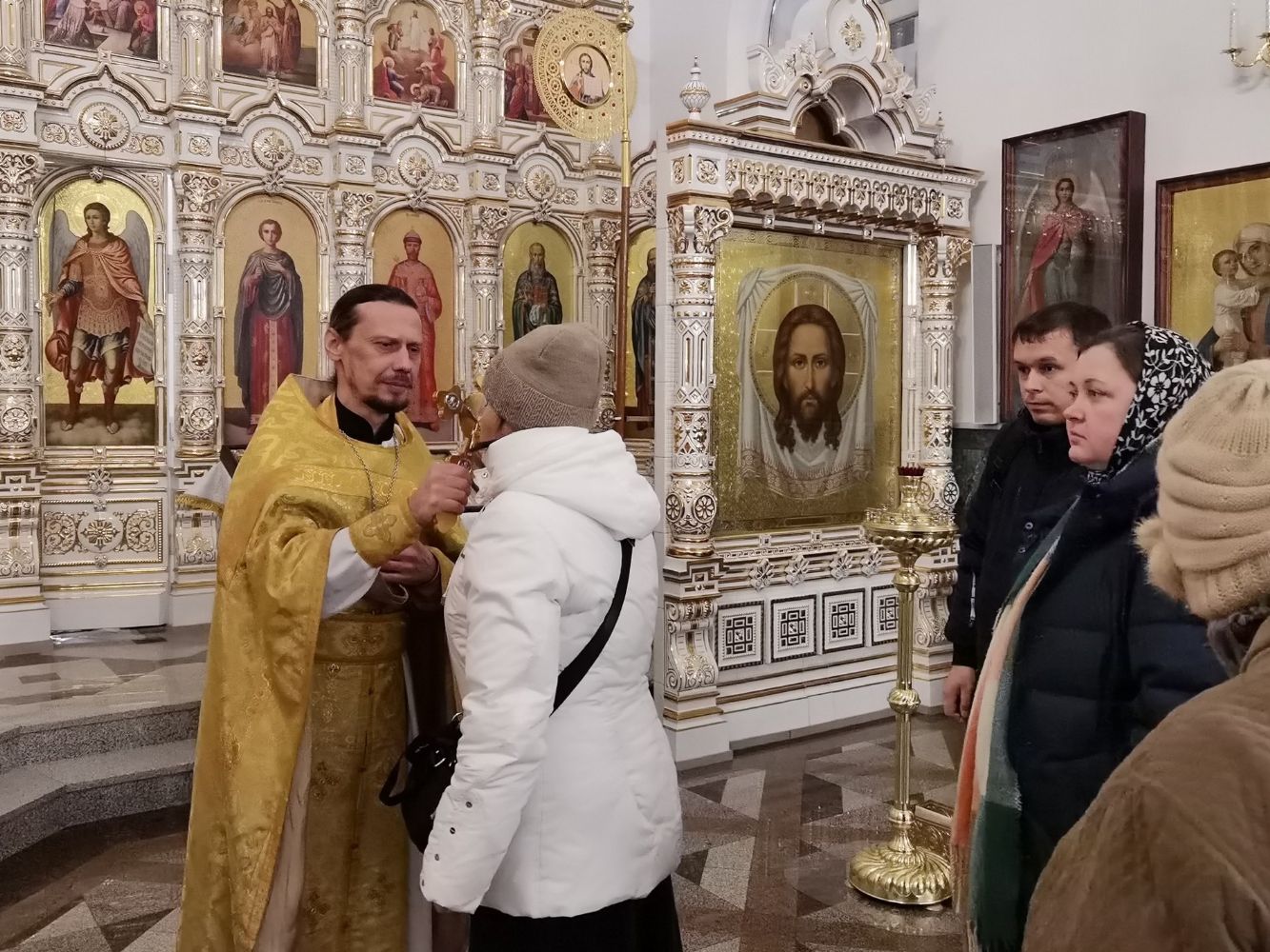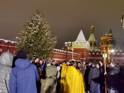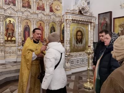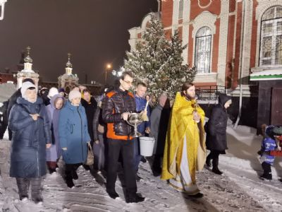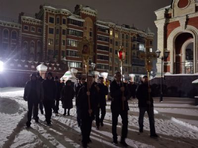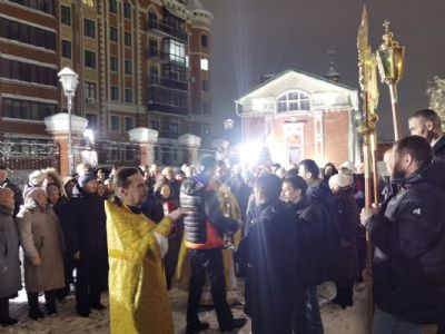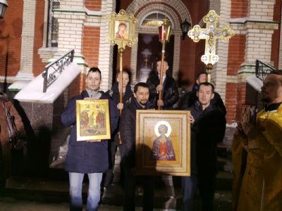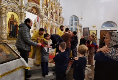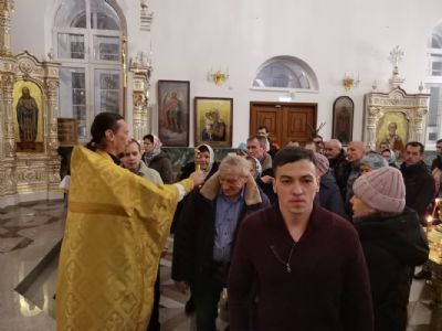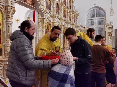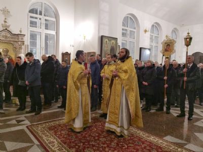 После Литургии был отслужен молебен святому мученику Вонифатию, память которого празднуется 1 января и которому молятся от избавления от недуга пьянства и других пагубных страстей. Верующие с иконой мученика Вонифатия с частицей его мощей прошли вокруг храма крестным ходом.