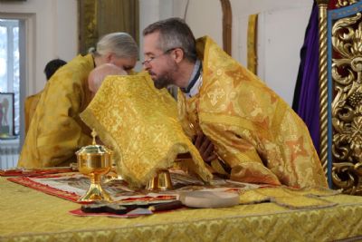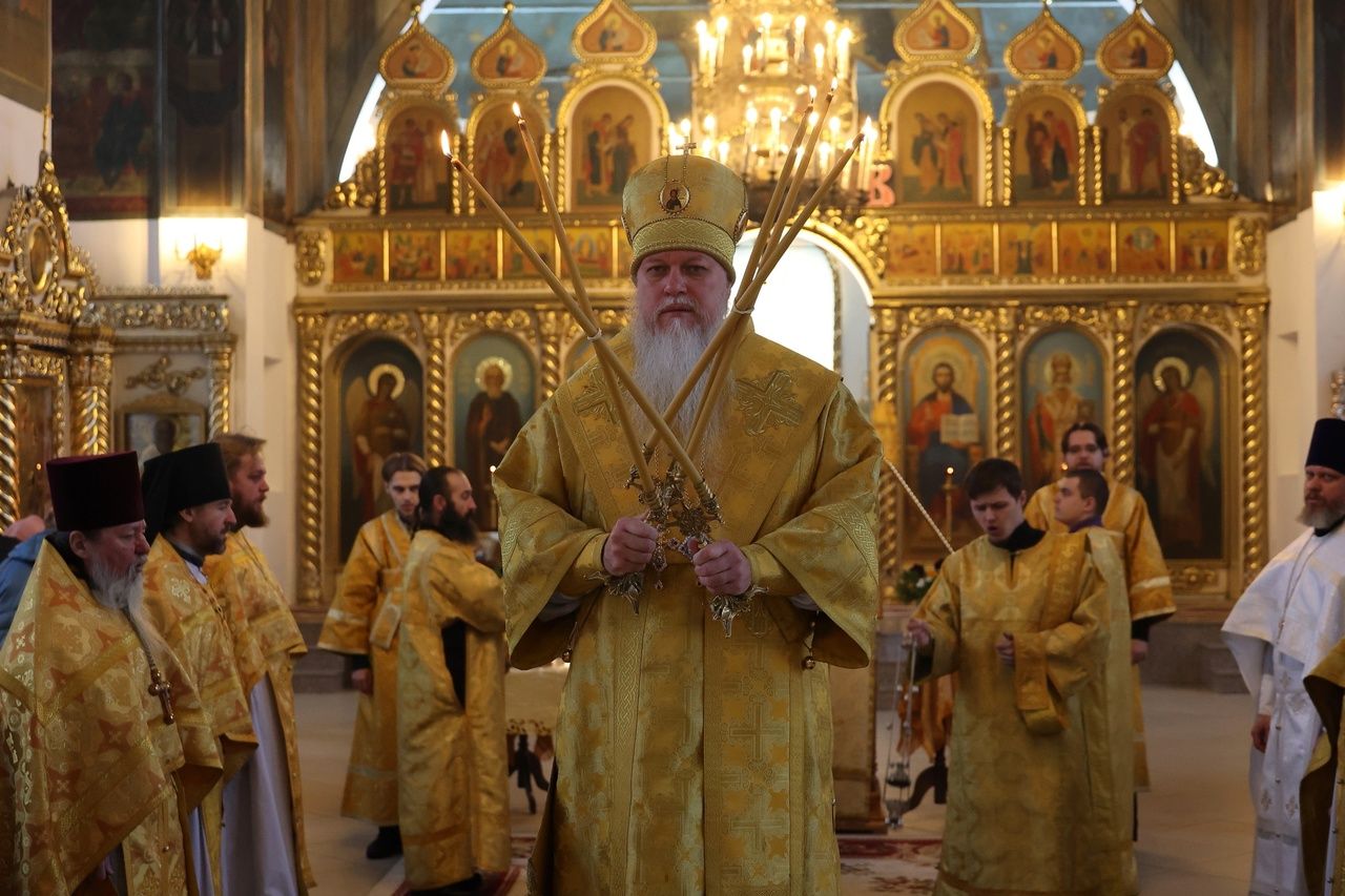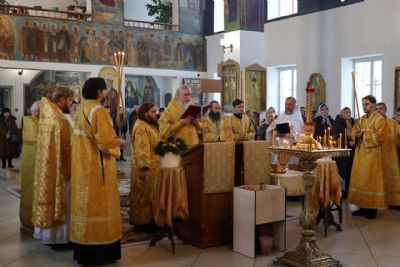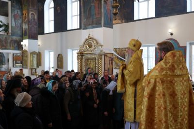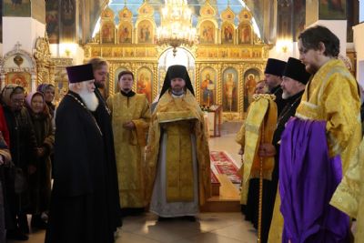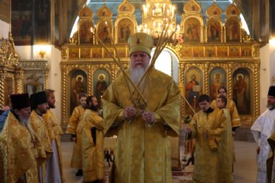 Архипастырю сослужили клирики собора, песнопения исполнял архиерейский хор.