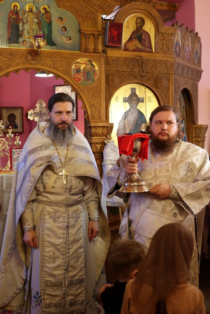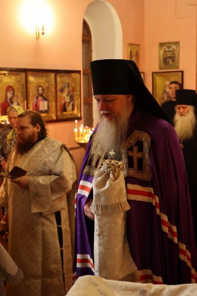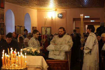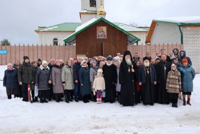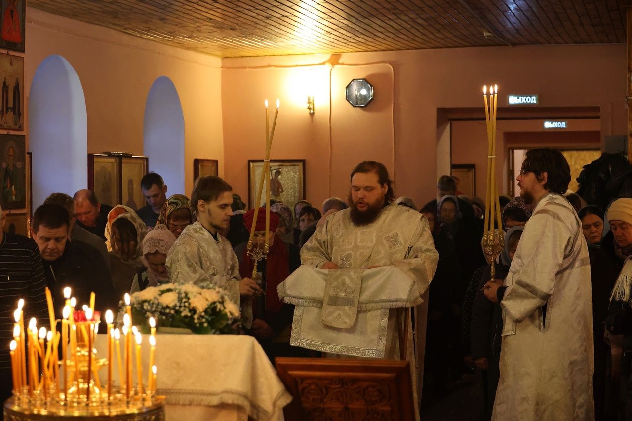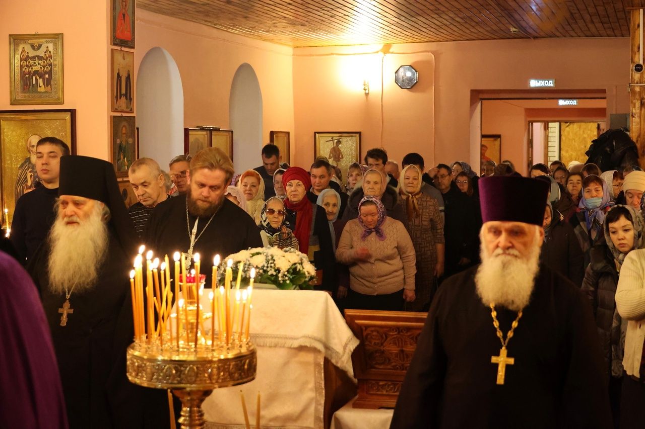 Его Преосвященству сослужили настоятель храма, духовник Волжской епархии иеромонах Иоанн (Панин), клирик храма иерей Алексей Скрябин, клирики Никольского кафедрального собора иерей Владимир Тимофеев, иерей Димитрий Карпетченко, диакон Иоанн Захаров. Песнопения исполнял хор под управлением регента Павла Петрова.