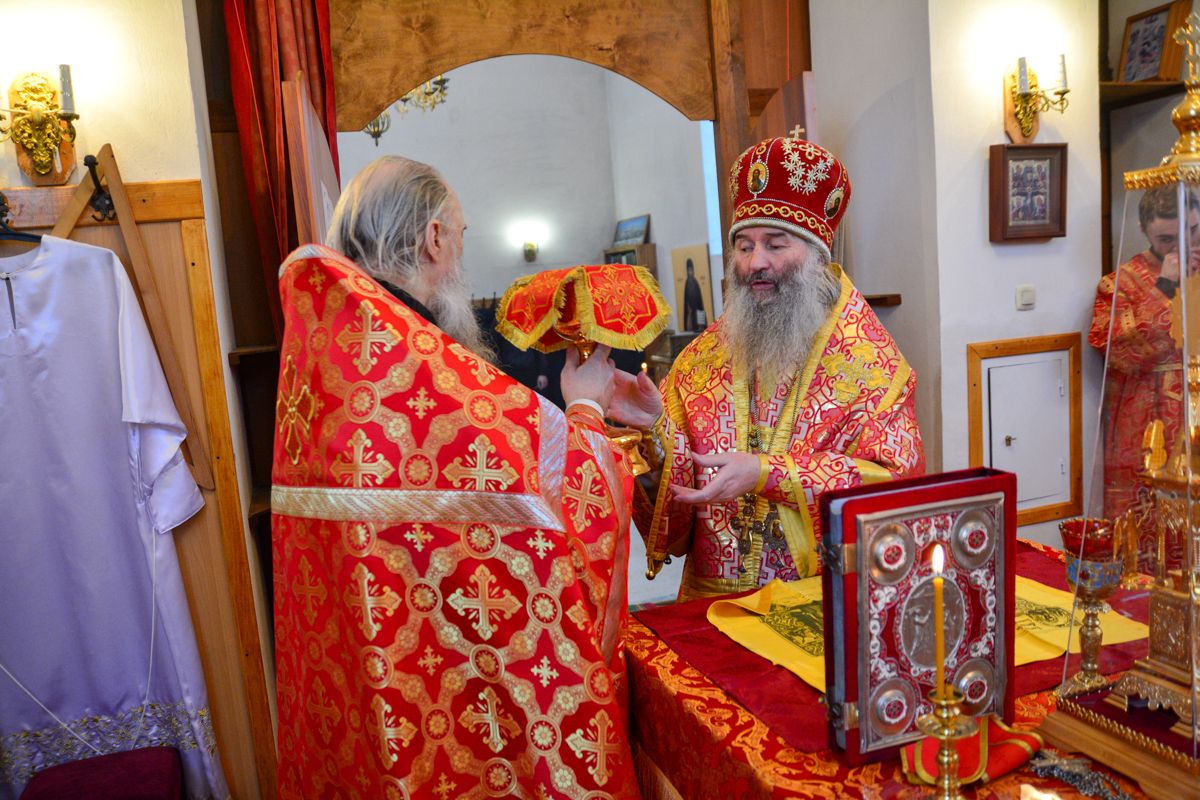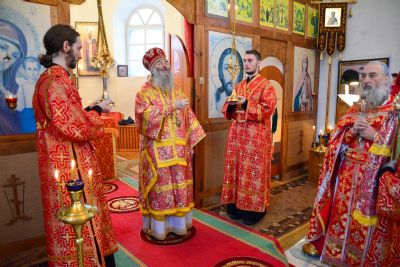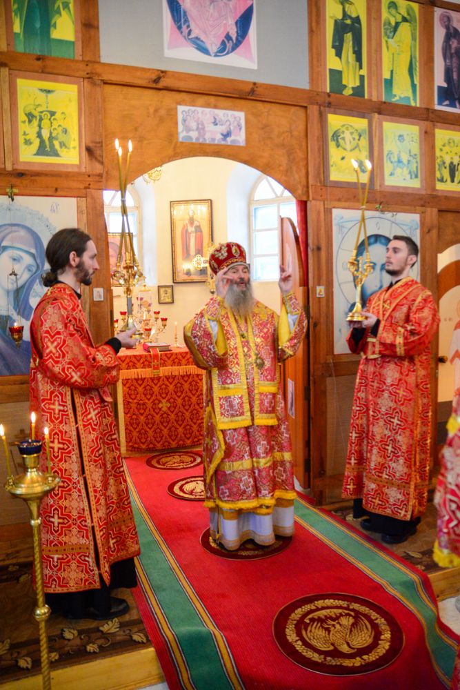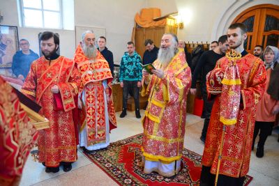 Архипастырю сослужили: настоятель Успенского храма г. Йошкар-Олы протоиерей Сергий Филонов и клирик Благовещенского кафедрального собора диакон Артемий Бобоч. Песнопения исполняли певчие Успенского храма под управлением регента Александры Ивановой.