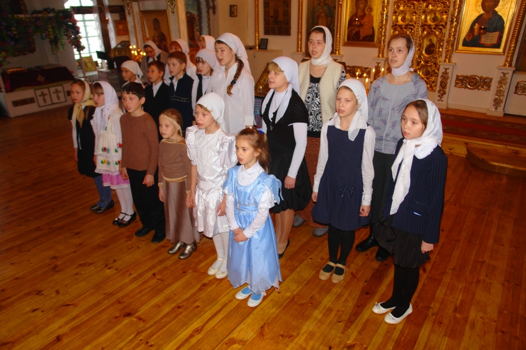 Его Высокопреосвященству сослужил настоятель прихода протоиерей Алексий Никитин и клирик иерей Владимир Яшин. По окончании Литургии ребята из воскресной школы показали интересную сценку под названием «Пылинка и капелька», также дети спели песни о Пречистой Богородице.