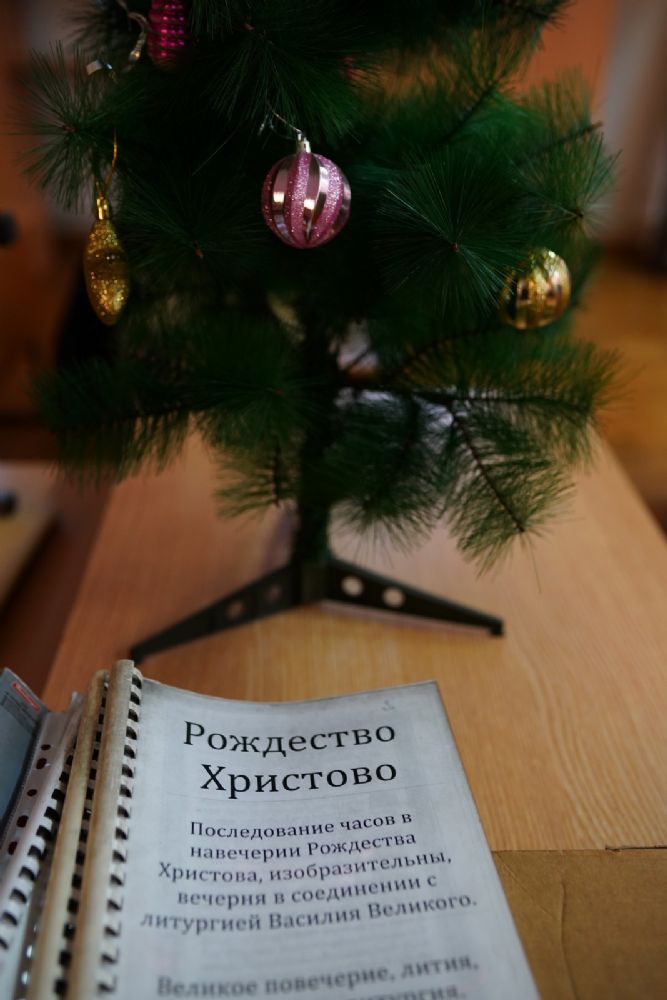 По отпусте Литургии из алтаря на середину храма была вынесена горящая свеча, символизирующая Вифлеемскую звезду, и пропеты тропарь и кондак праздника Рождества Христова.