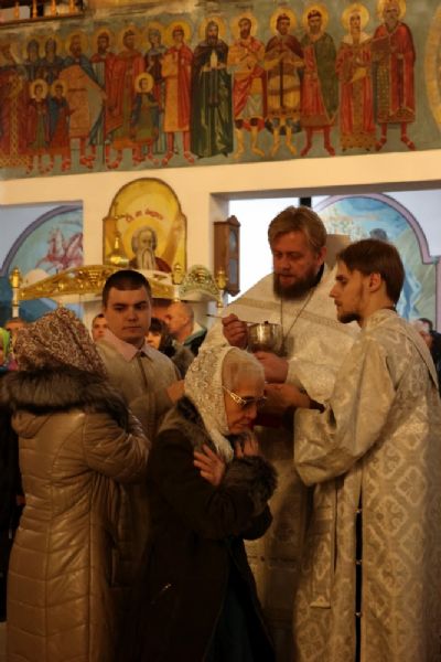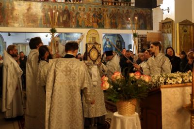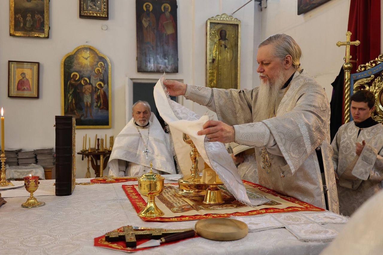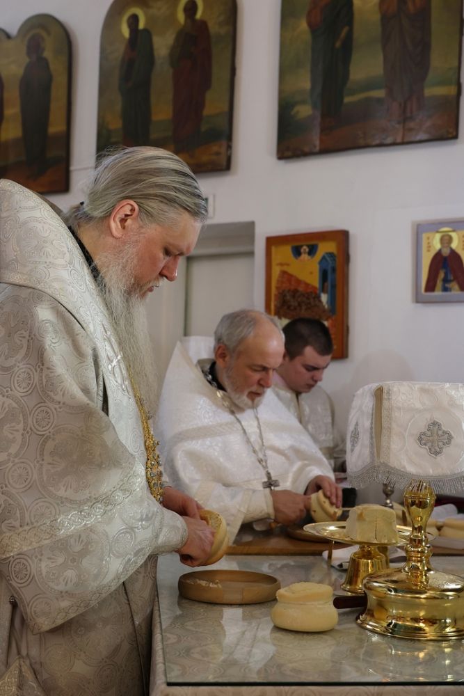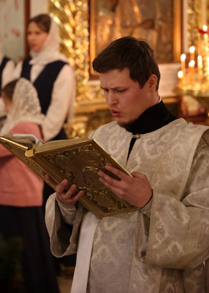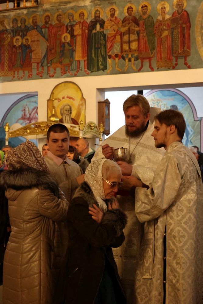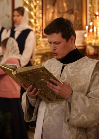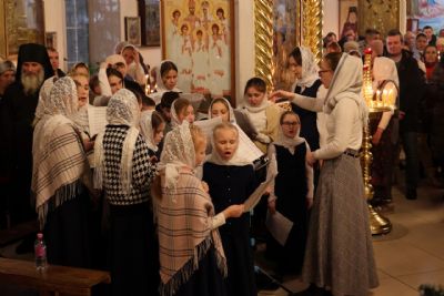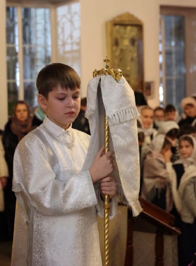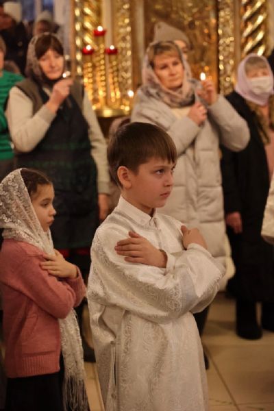 Его Преосвященству сослужило духовенство собора. Песнопения исполняли два хора: архиерейский (регент Любовь Михеева) и детско-юношеский хор «Славословие» (регент Мария Захарова).