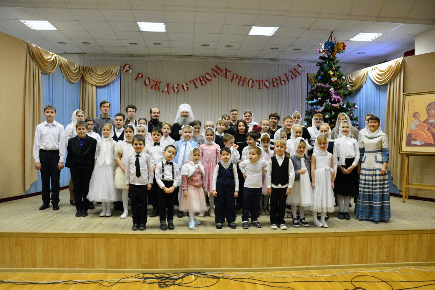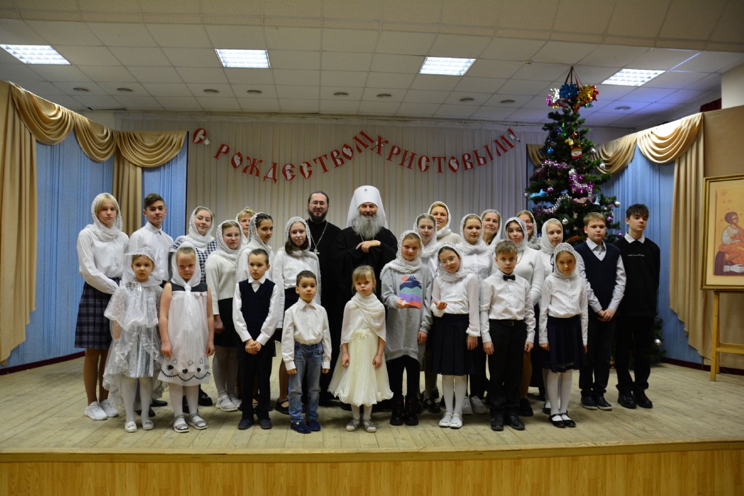 После концерта владыка Иоанн поздравил всех с праздником Рождества Христова и вручил юным актерам сладкие подарки.