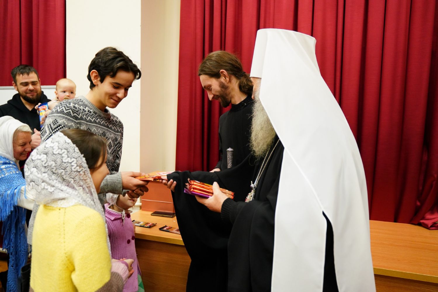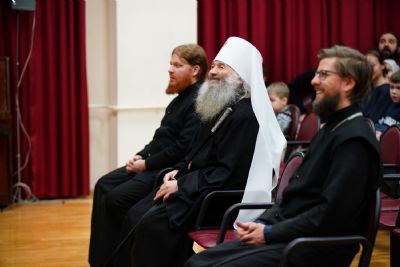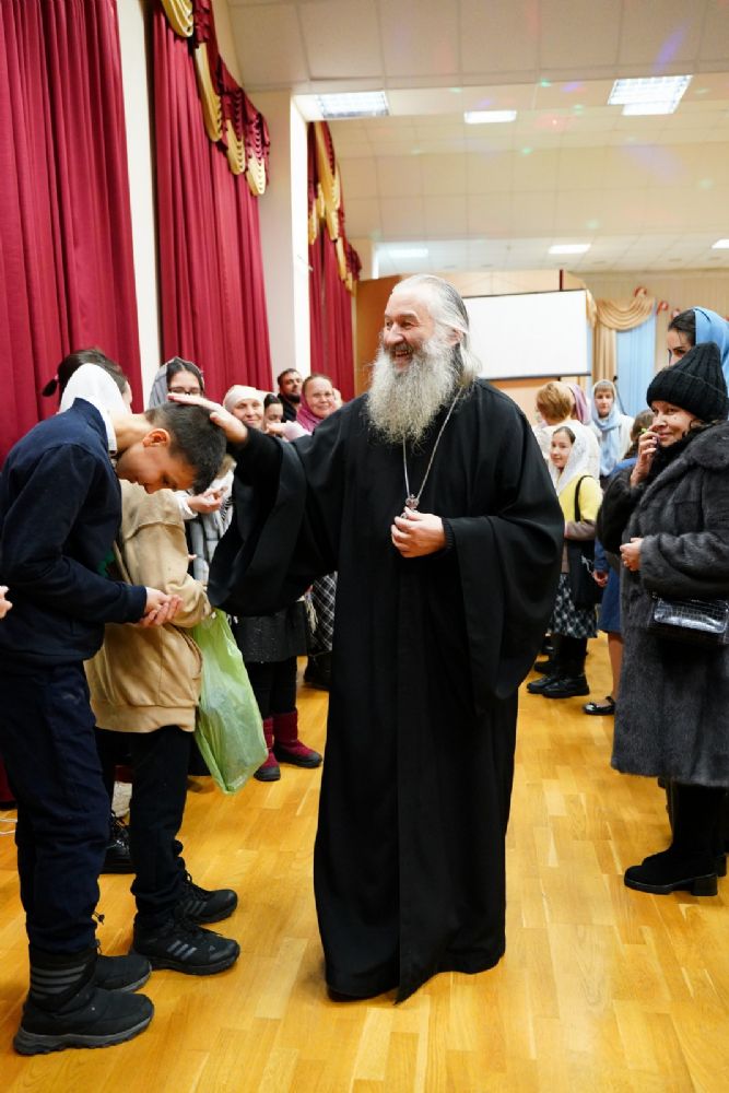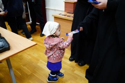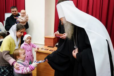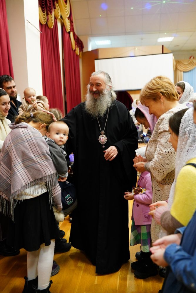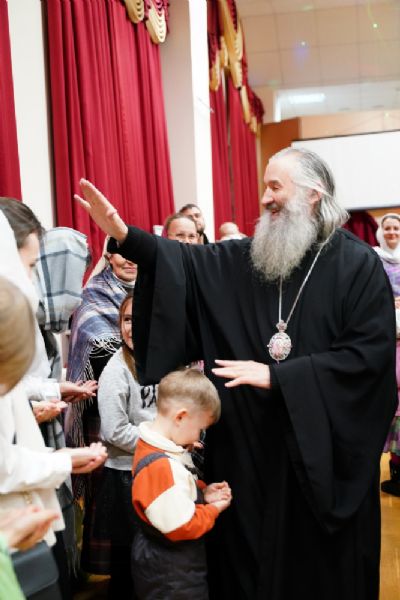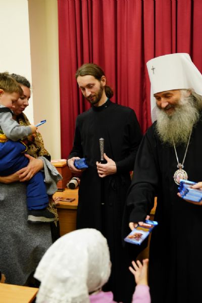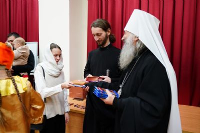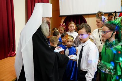Всем юным актерам и зрителям владыка вручил сладкие подарки.