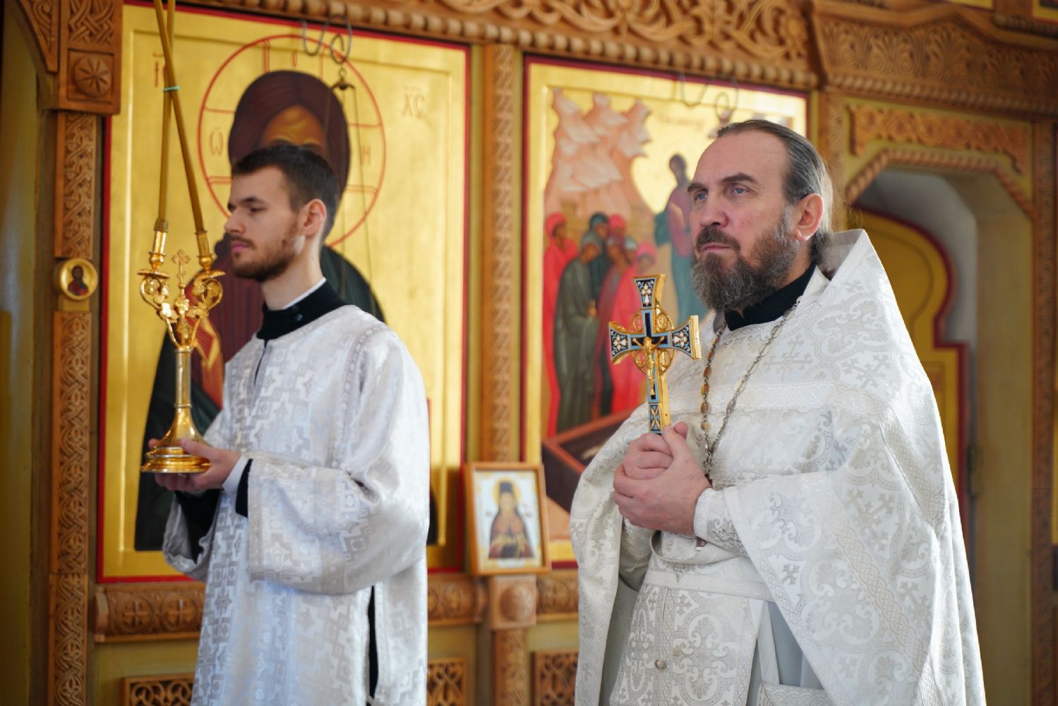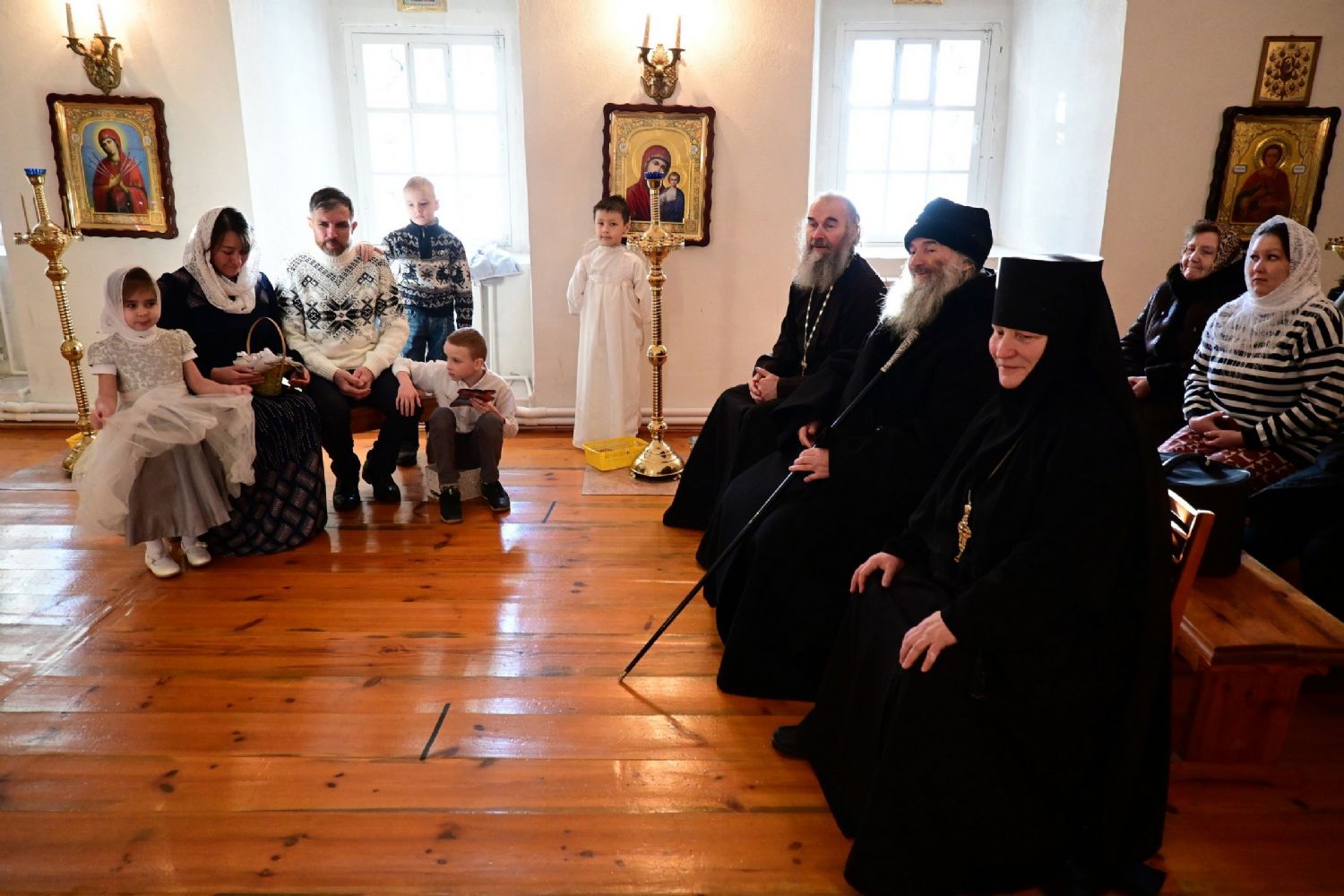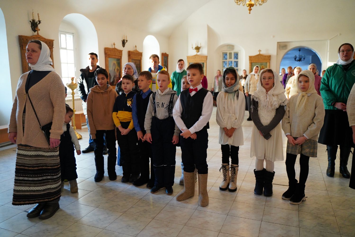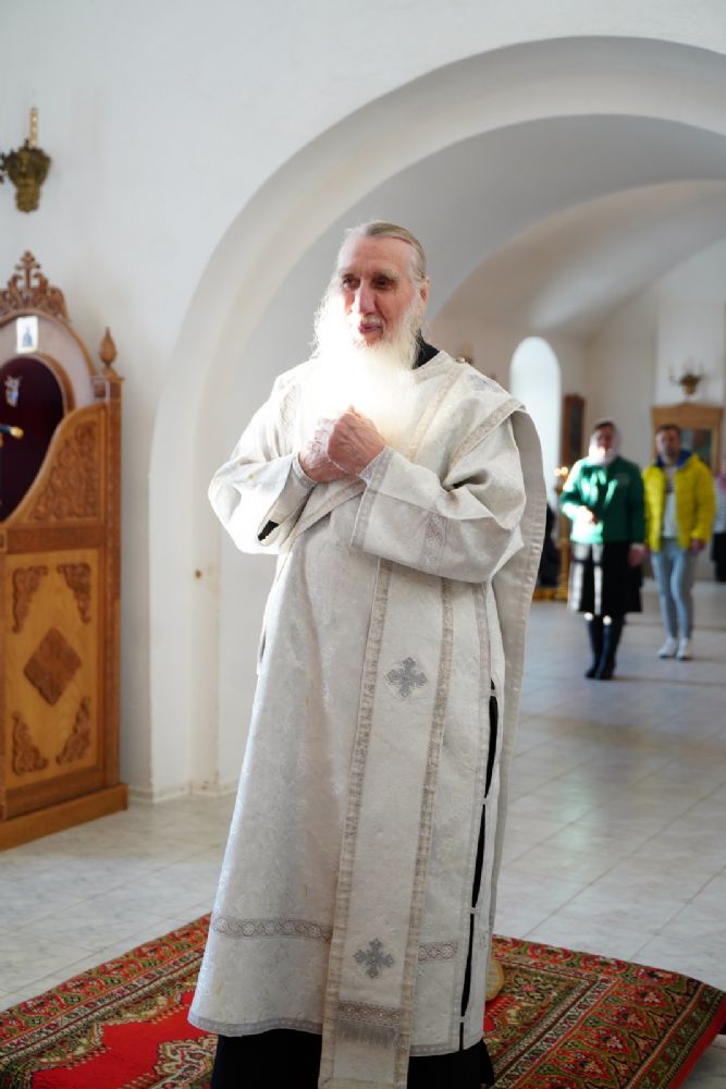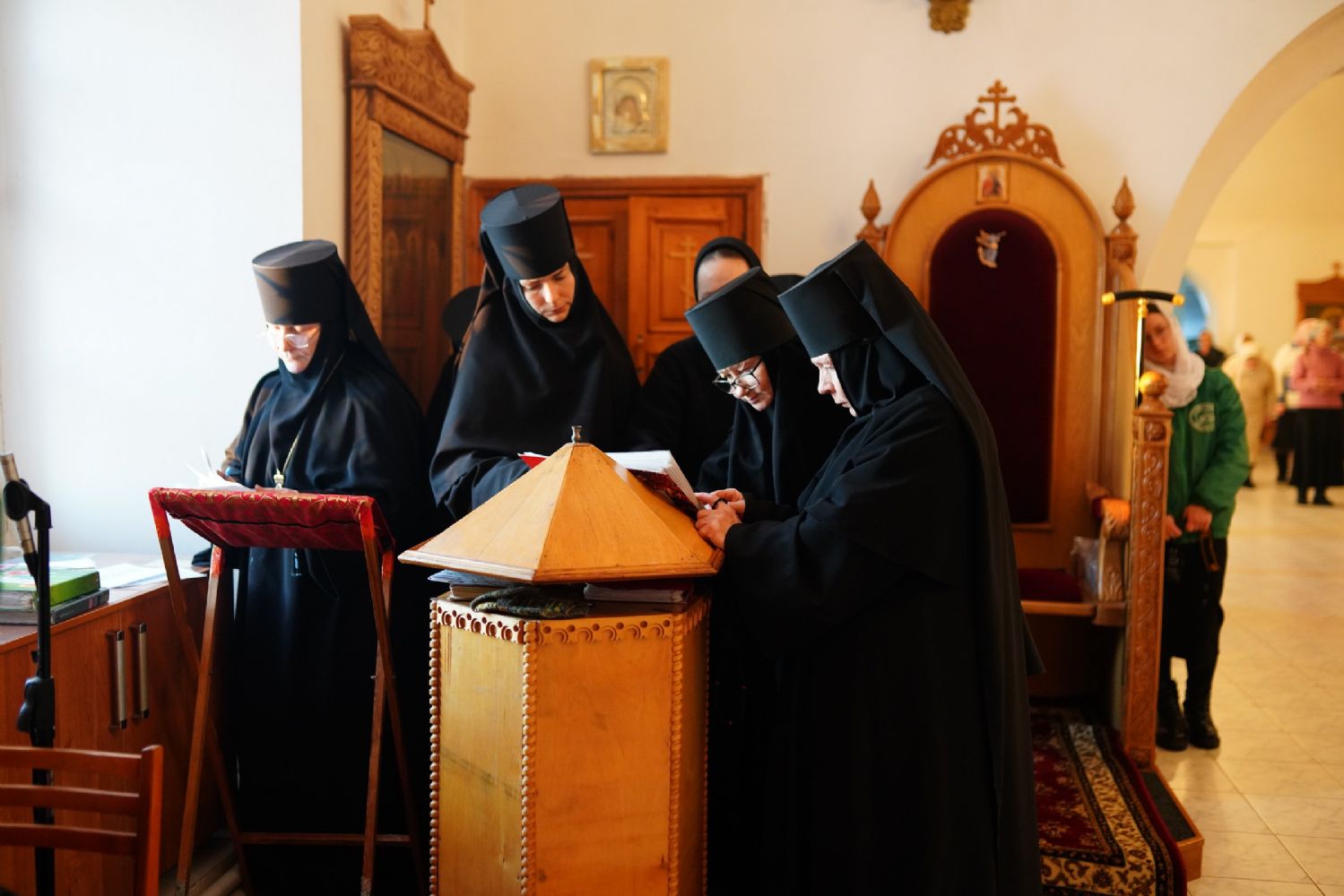 Владыке сослужили секретарь Йошкар-Олинского епархиального управления иеромонах Серафим (Пасанаев), клирик монастыря иерей Михаил Лежнин и протодиакон Михаил Козловский. Песнопения исполнял детско-юношеский хор «Благовест» под руководством регента Татьяны Черновой.