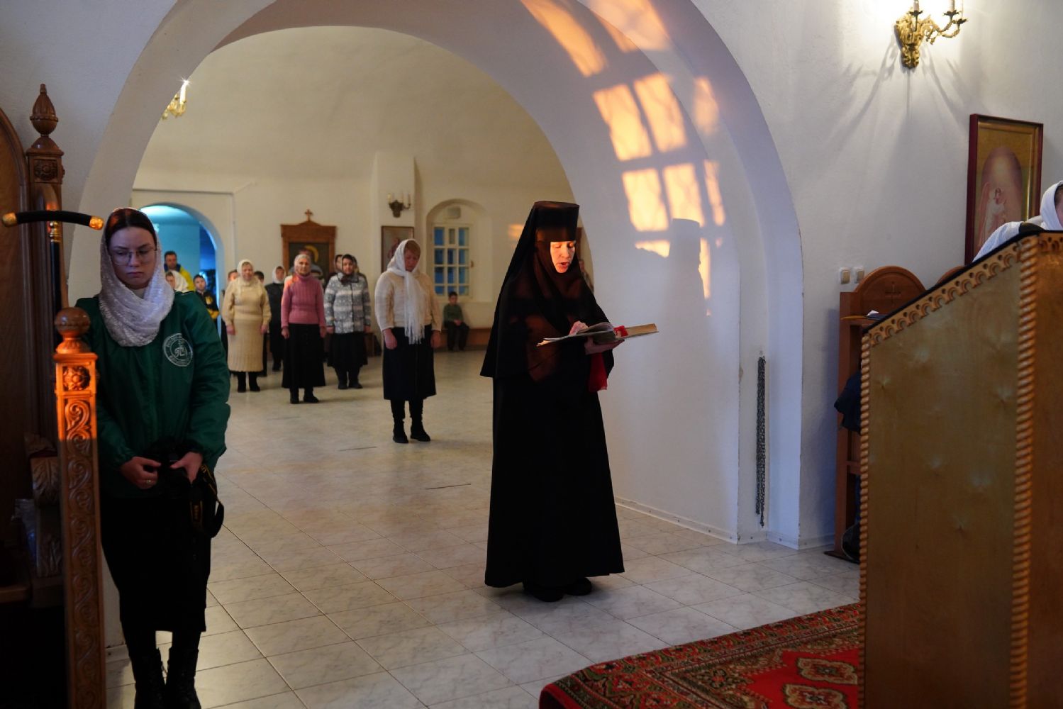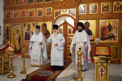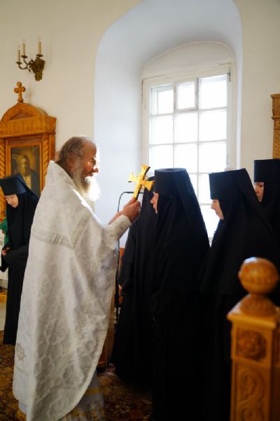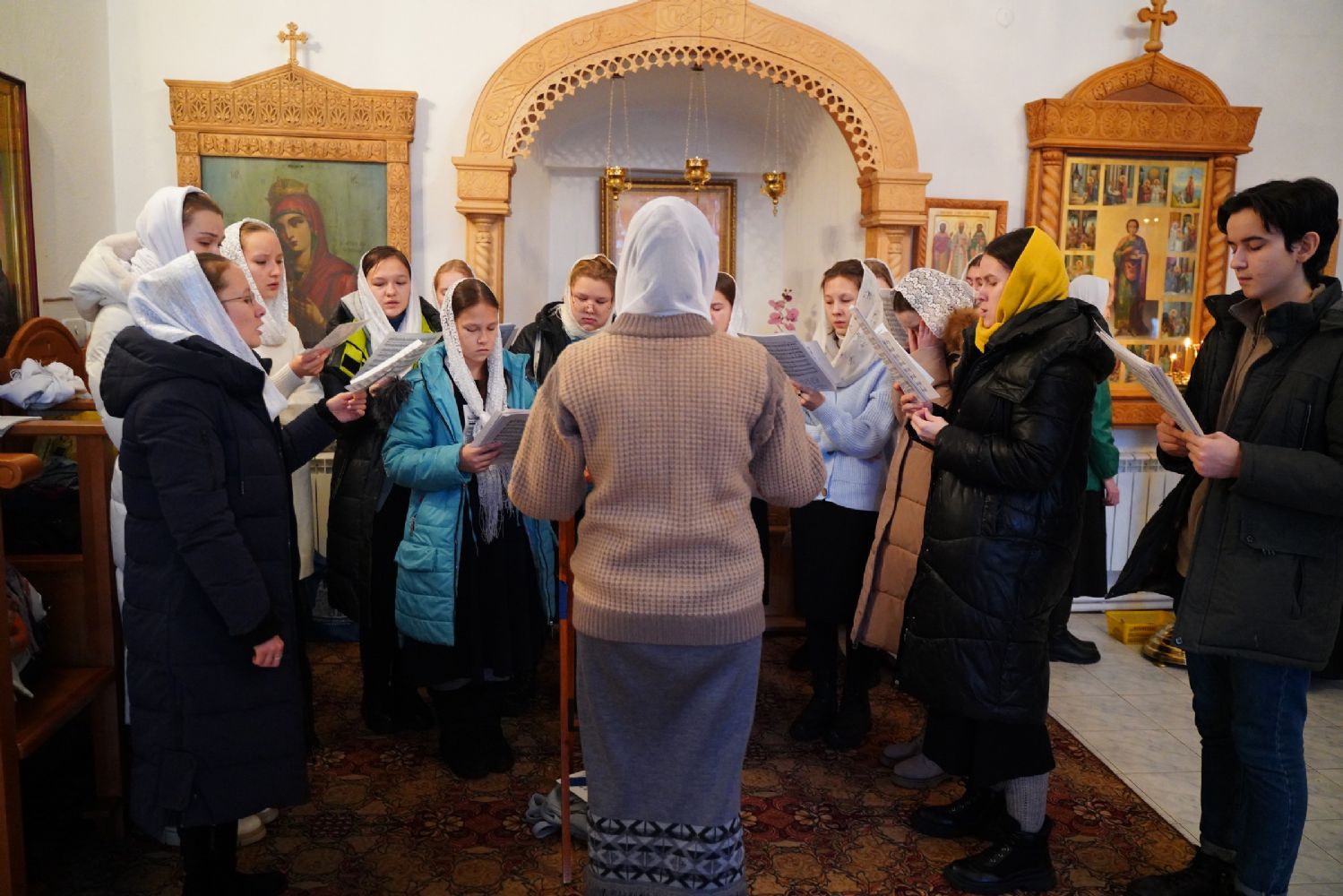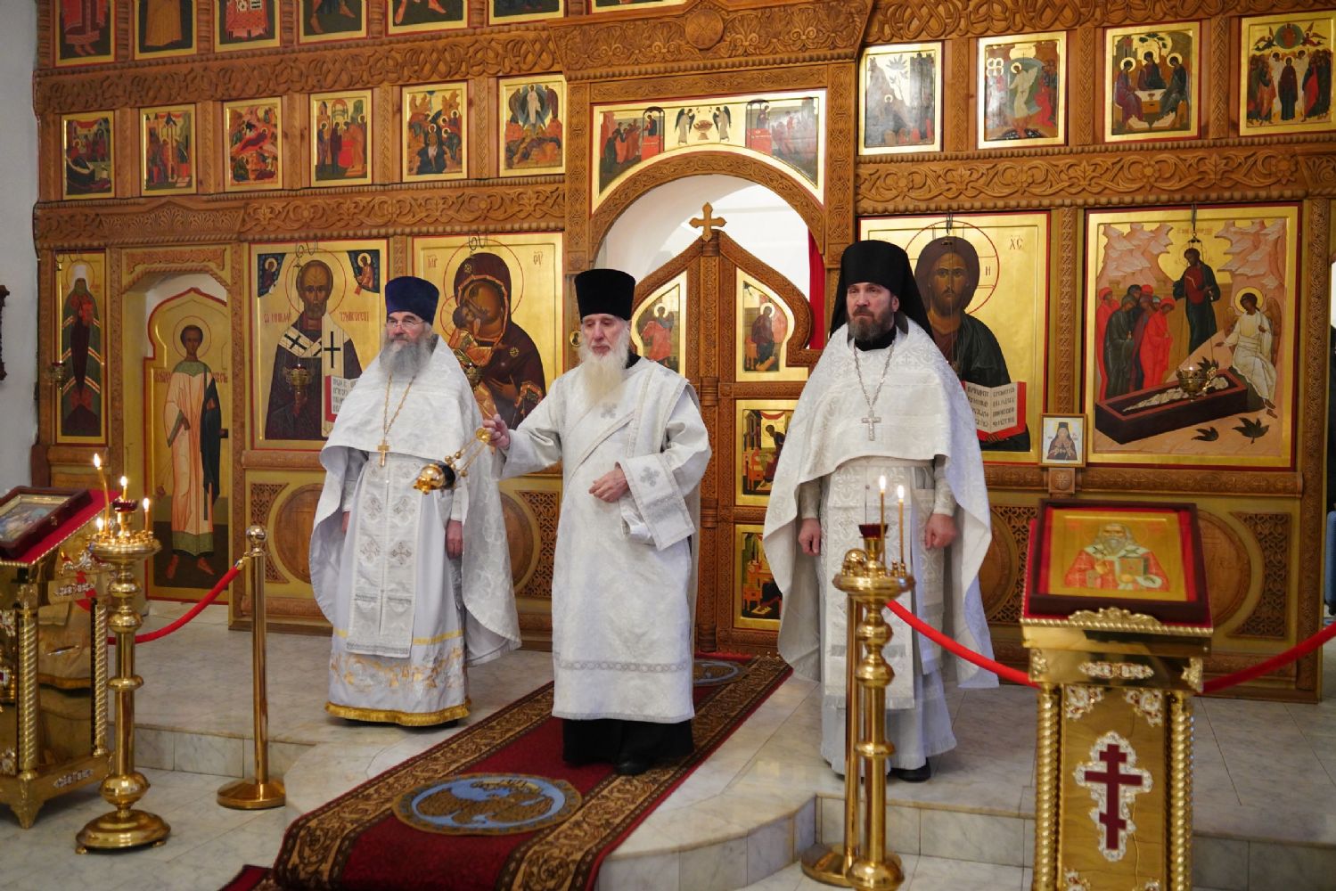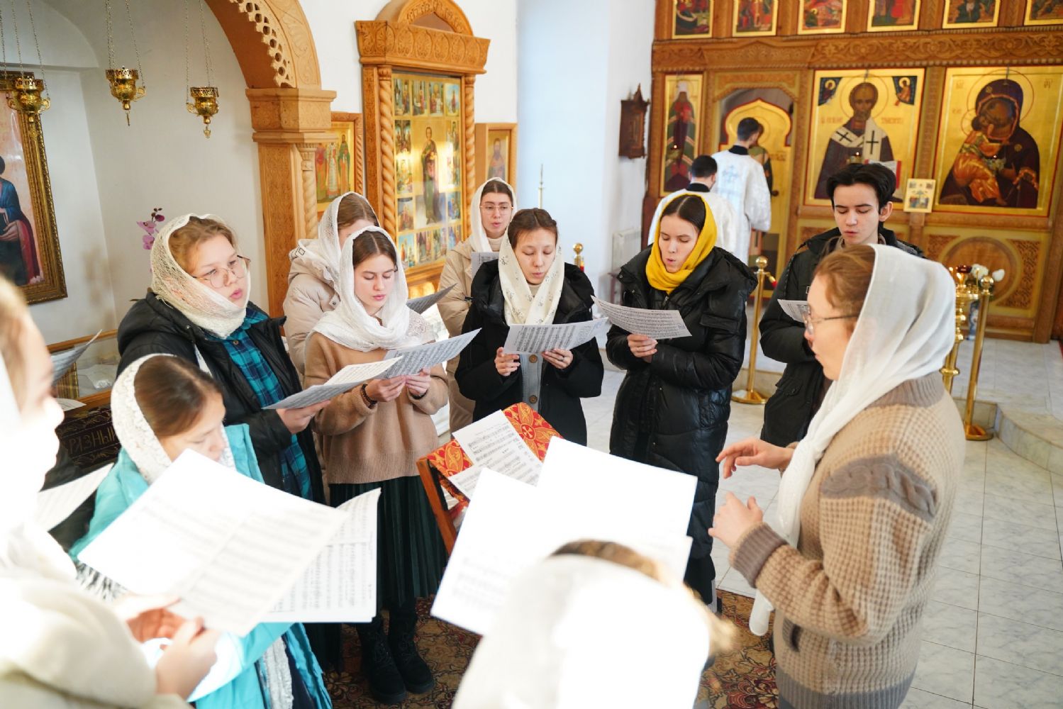 Владыке сослужили секретарь Йошкар-Олинского епархиального управления иеромонах Серафим (Пасанаев), клирик монастыря иерей Михаил Лежнин и протодиакон Михаил Козловский. Песнопения исполнял детско-юношеский хор «Благовест» под руководством регента Татьяны Черновой.