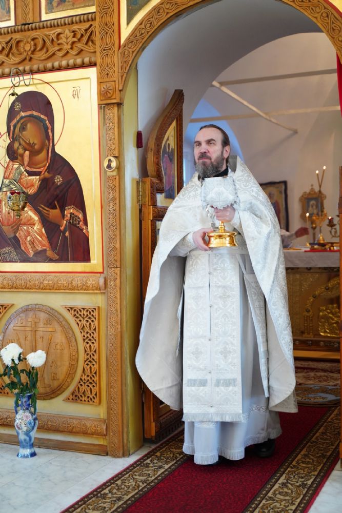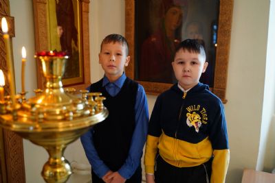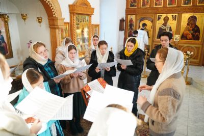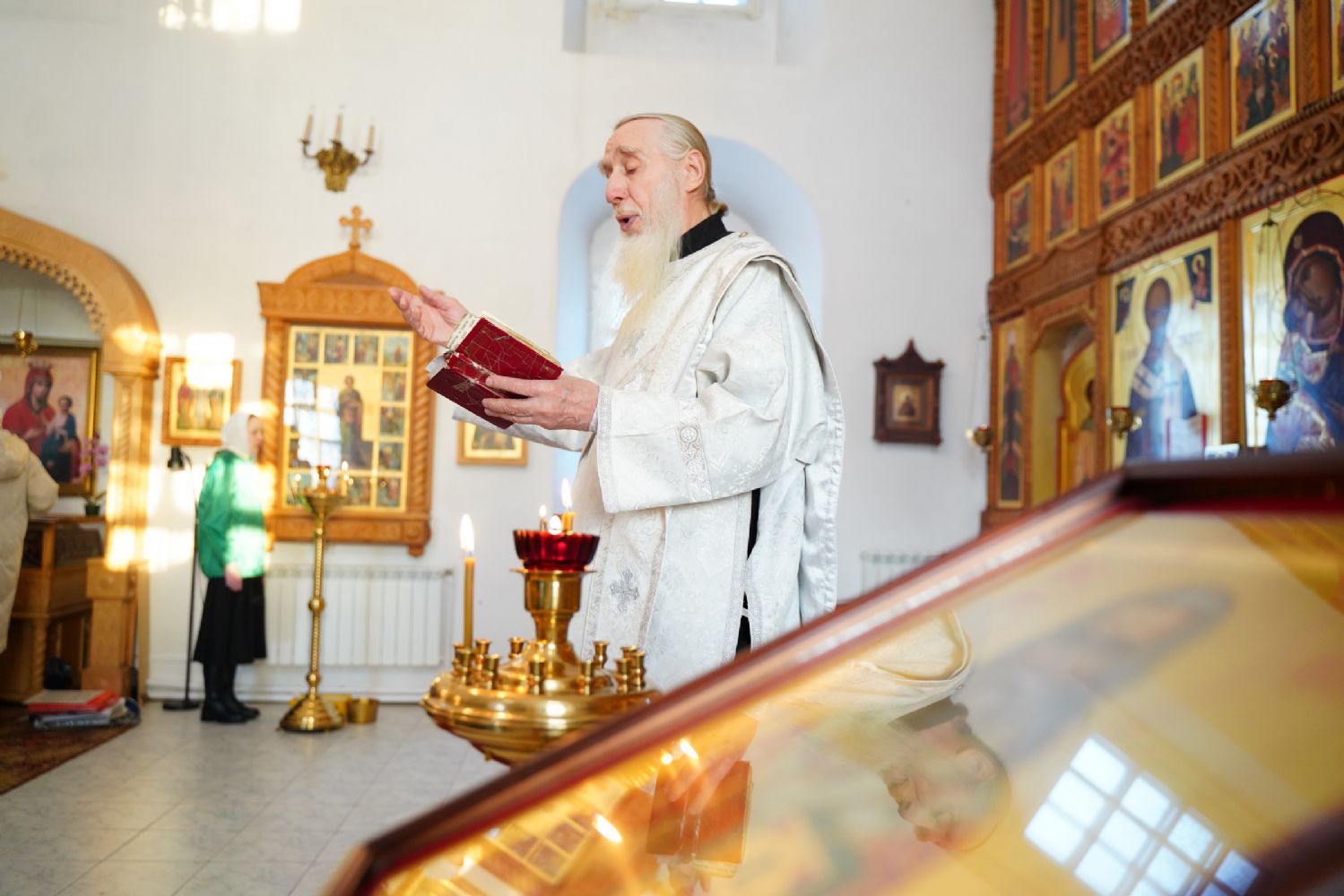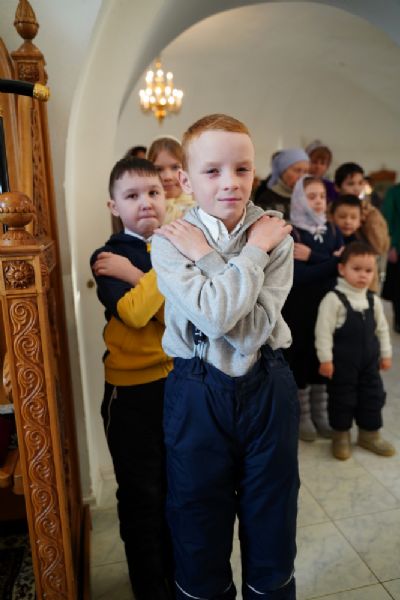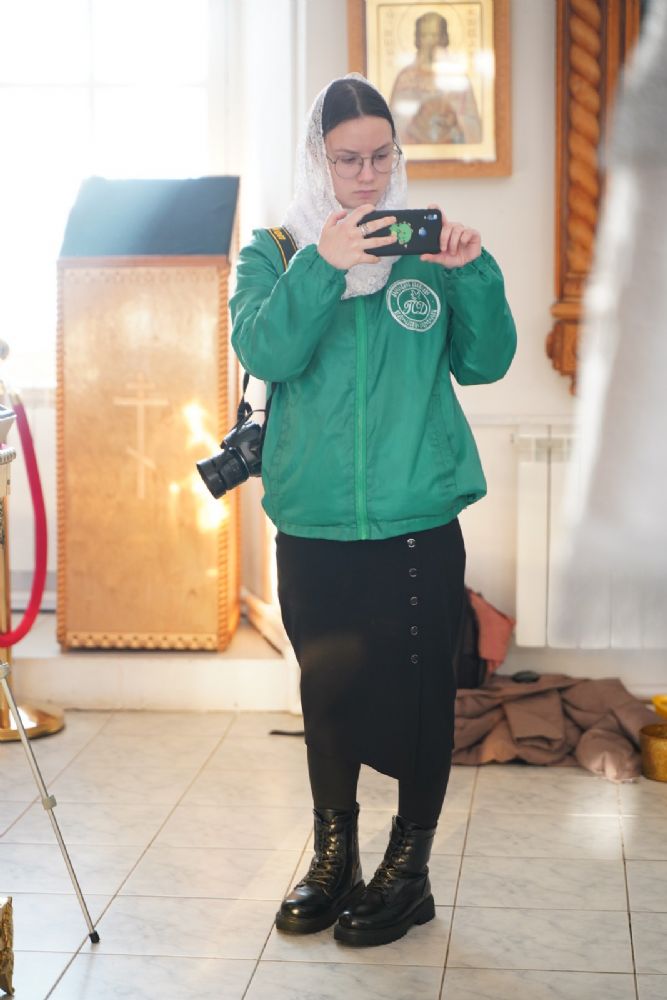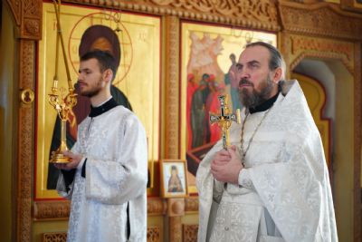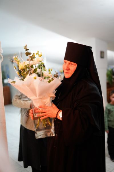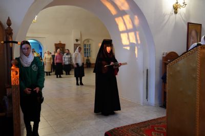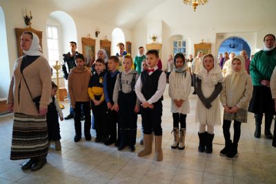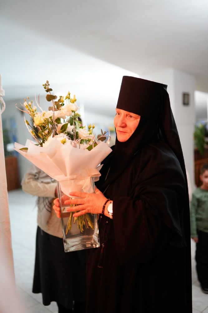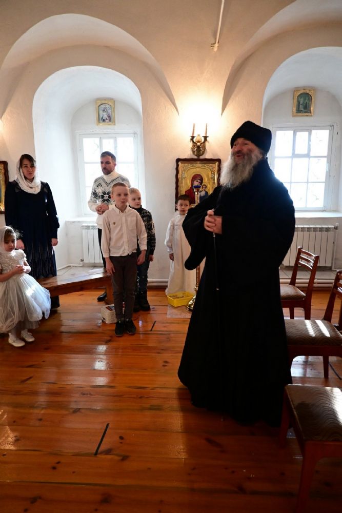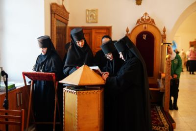 Владыке сослужили секретарь Йошкар-Олинского епархиального управления иеромонах Серафим (Пасанаев), клирик монастыря иерей Михаил Лежнин и протодиакон Михаил Козловский. Песнопения исполнял детско-юношеский хор «Благовест» под руководством регента Татьяны Черновой.