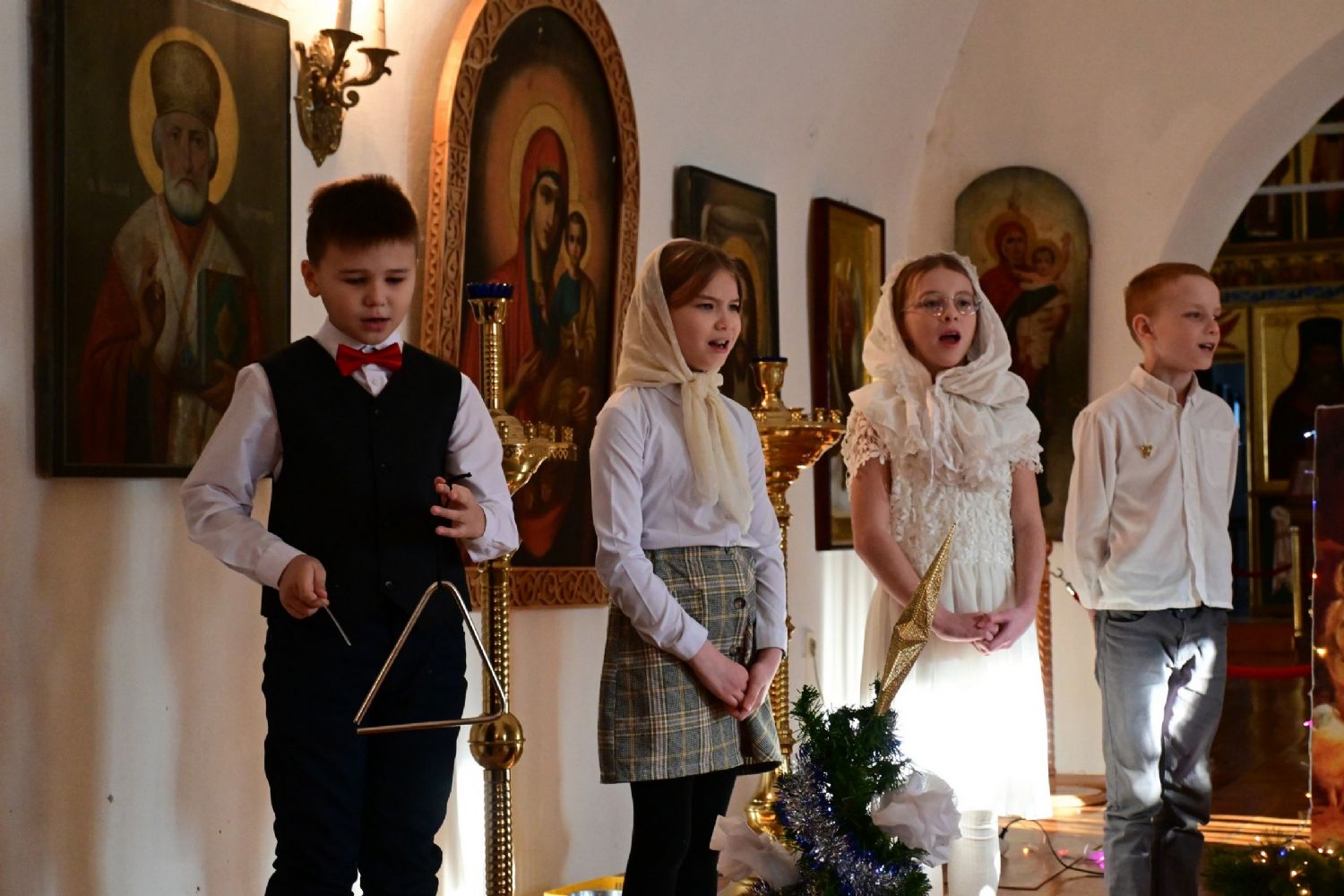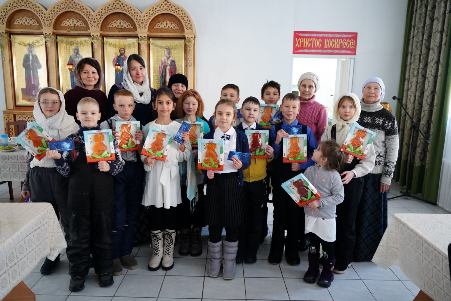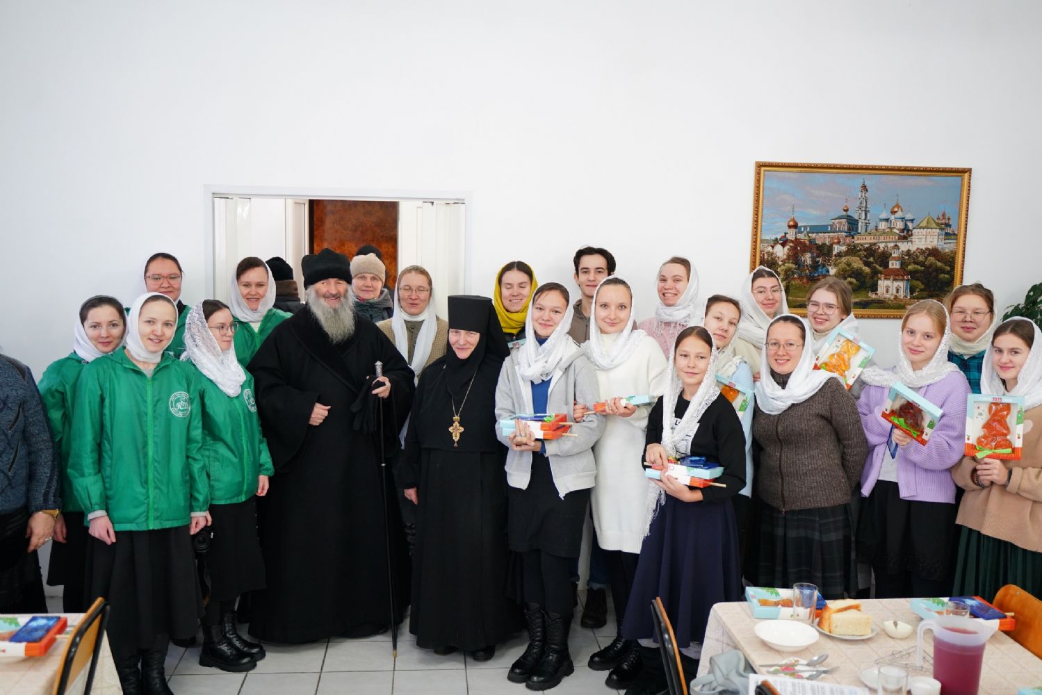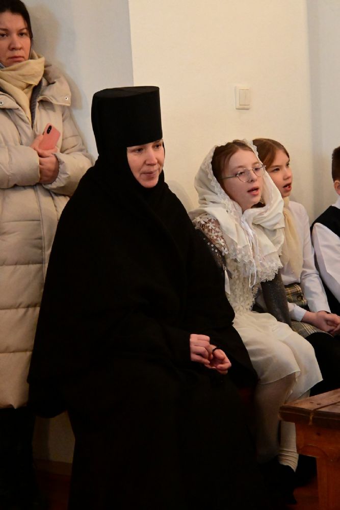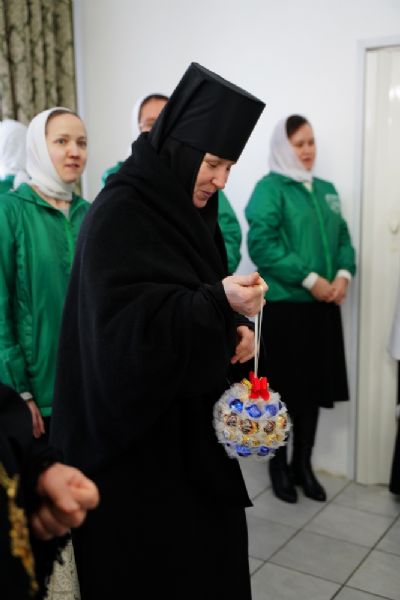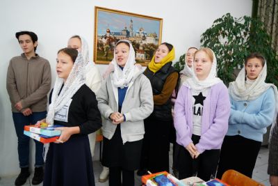 В завершение воспитанники воскресной школы при монастыре выступили перед собравшимся с рождественским концертом, а владыка вручил детям, а также насельницам монастыря сладкие подарки.