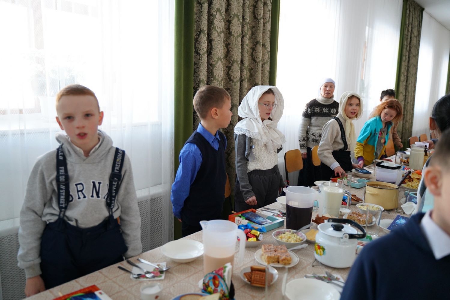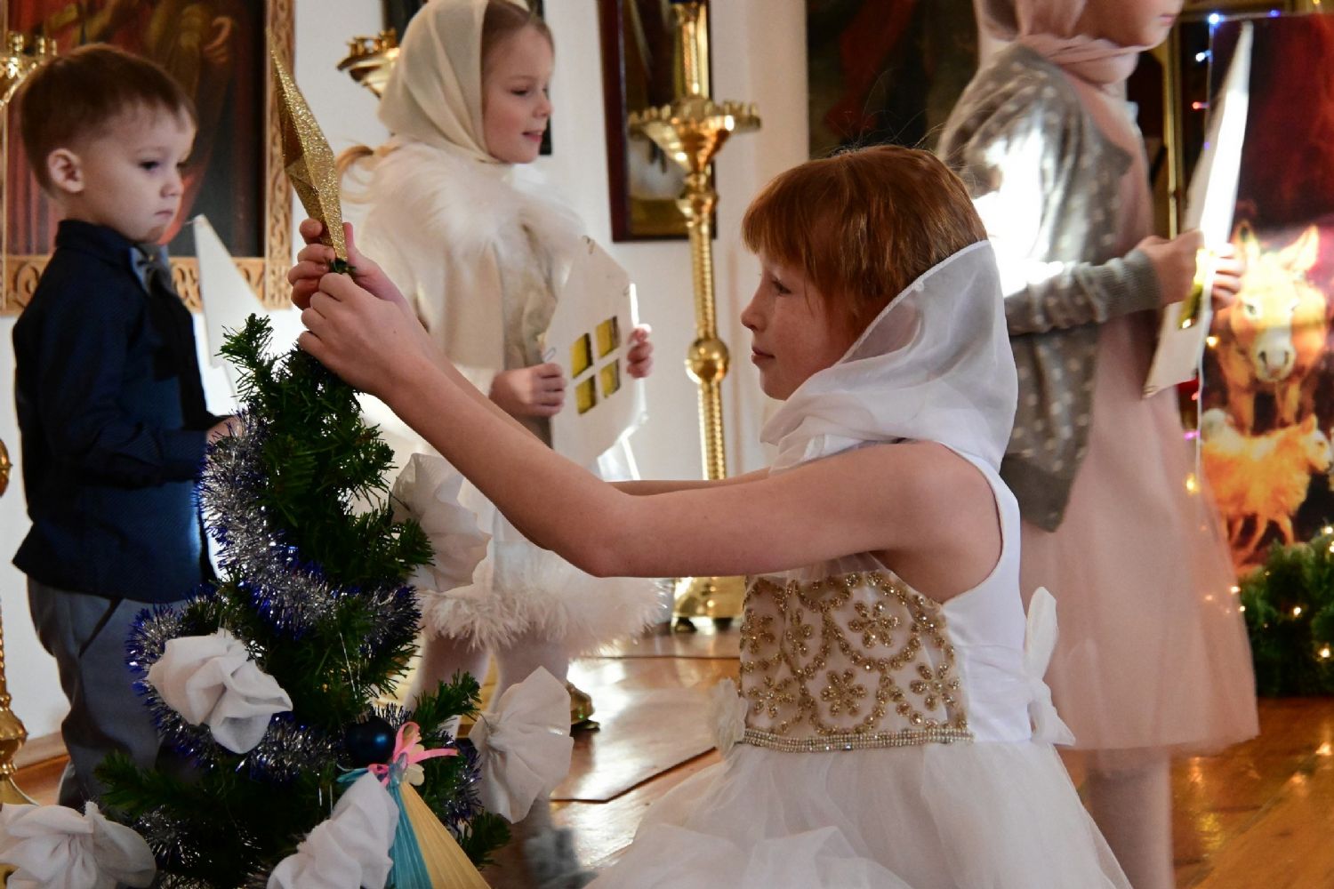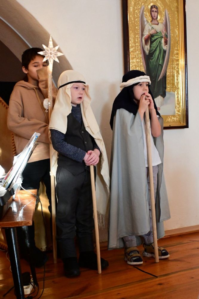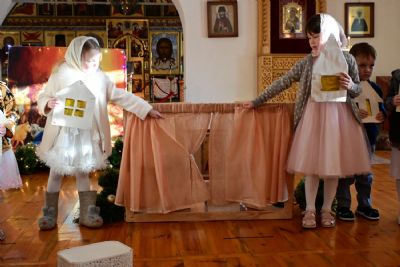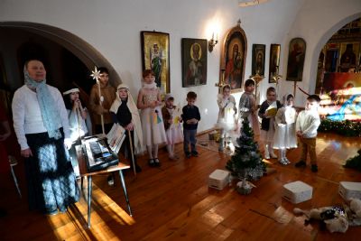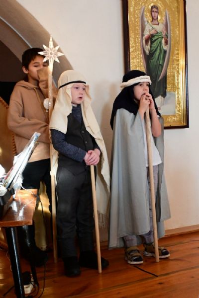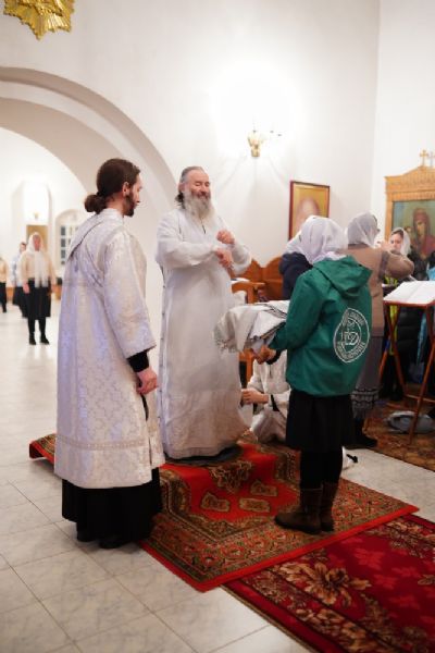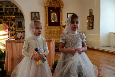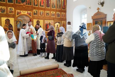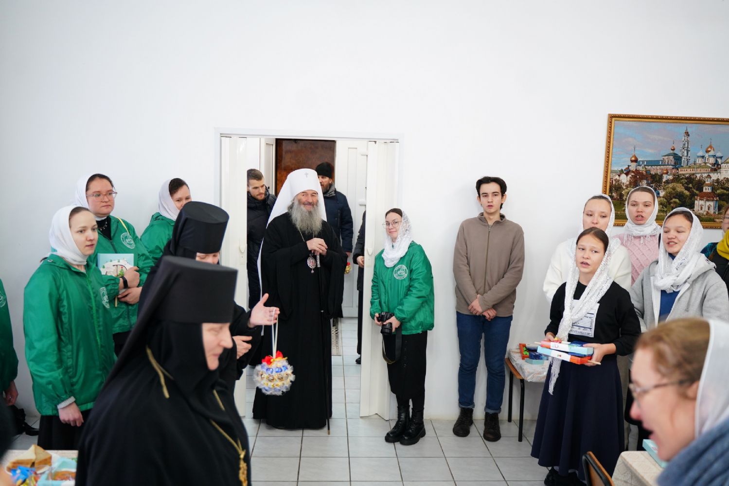 В завершение воспитанники воскресной школы при монастыре выступили перед собравшимся с рождественским концертом, а владыка вручил детям, а также насельницам монастыря сладкие подарки.