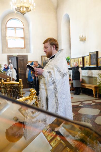 Его Высокопреосвященству сослужили секретарь Йошкар-Олинского епархиального управления иеромонах Серафим (Пасанаев), настоятель храма протоиерей Сергий Филонов и клирики храма. Песнопения исполнял хор под управлением регента Александры Ивановой.