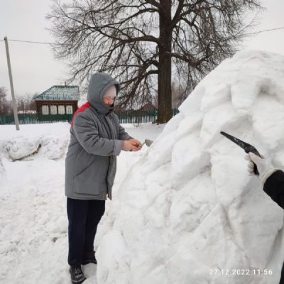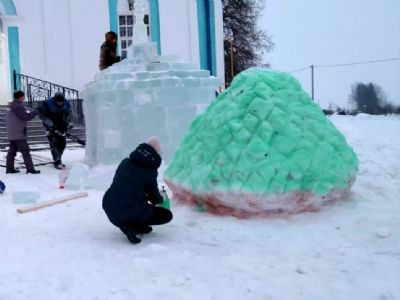 В этом году мы захотели украсить двор нашего храма как-то необычно. Решили выстроить ледяной вертеп, слепить из снега елочки и раскрасить их, поставить ледяную скамейку. Сколько было переживаний, как же это все соорудить… Но мы забываем о том, что Господь нас не оставит, Он обязательно поможет!