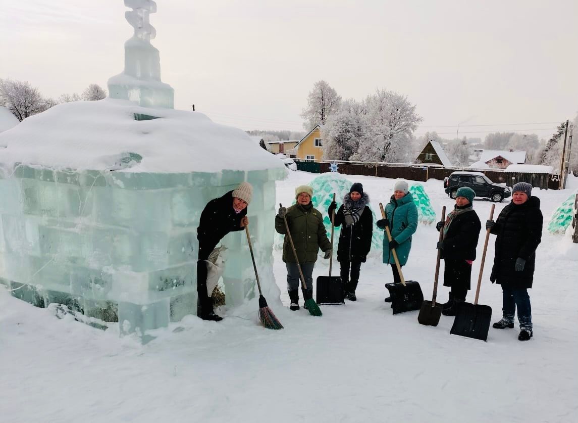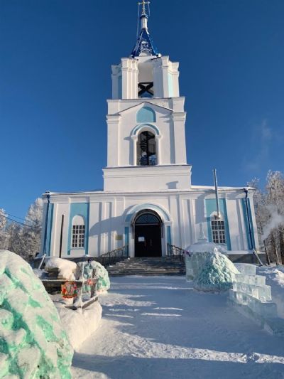 На протяжении нескольких дней неустанно трудились многие жители села – мужчины занялись строительством Рождественского вертепа, для которого надо было выпиливать ледяные кирпичи, а женщины и дети стали работать над елочками и готовить храм к празднику. А как важно привести в порядок храм перед праздником! Убирая и вымывая наш Божий дом, мы будто и сами очищаемся, омываем нашу душу. Сколько радости и трепета было в наших сердцах…