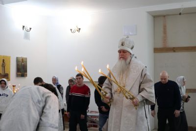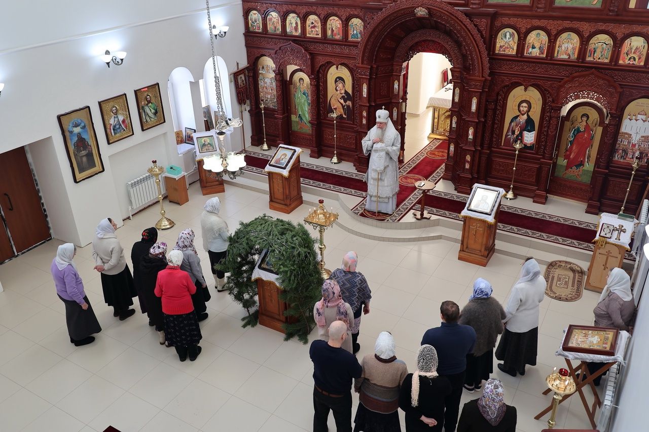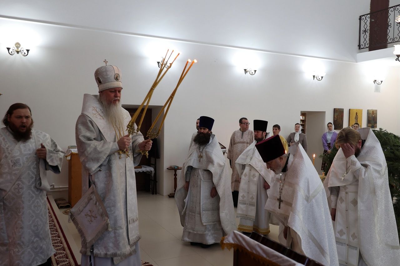 10 января, в попразднство Рождества Христова, епископ Волжский и Сернурский Феофан совершил Божественную Литургию в храме Новомучеников и исповедников Российских г. Волжска.
