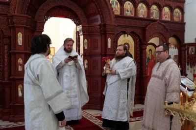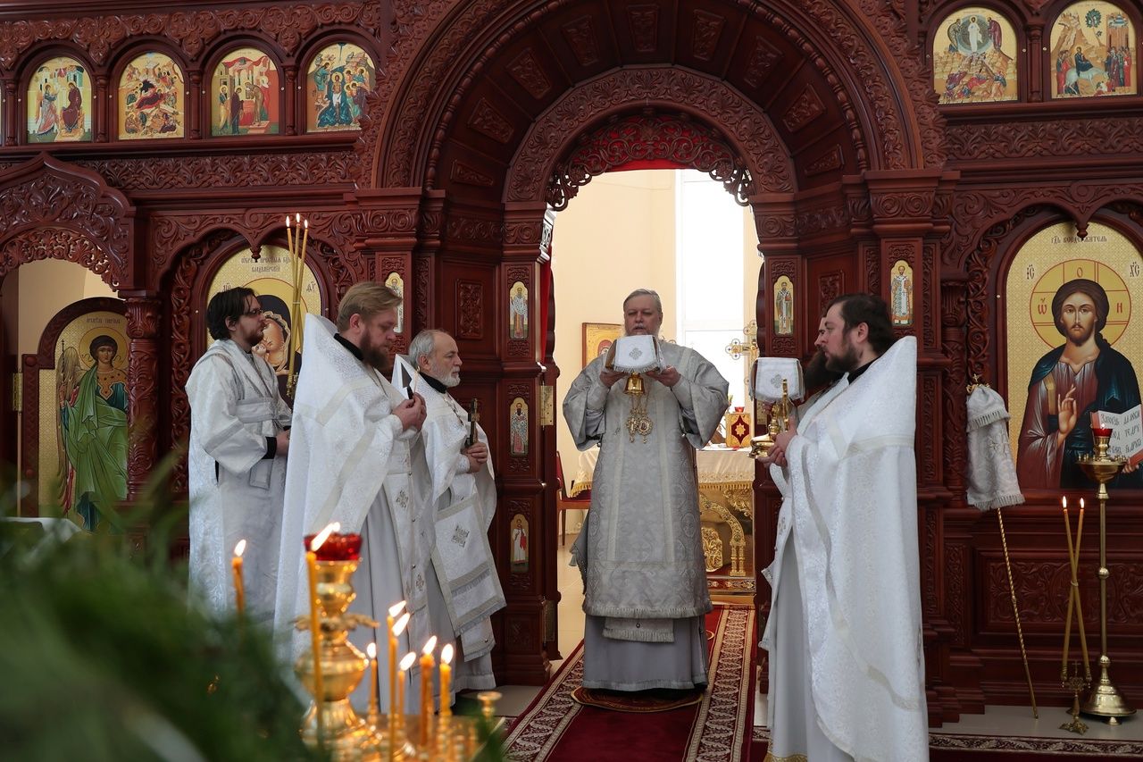 Его Преосвященству сослужили клирики Никольского кафедрального собора иереи Иоанн Белинский, Иоанн Лапшинский, Алексий Пидвысоцкий, Димитрий Карпетченко и диакон Иоанн Захаров. Песнопения исполнял архиерейский хор под управлением Любови Михеевой.