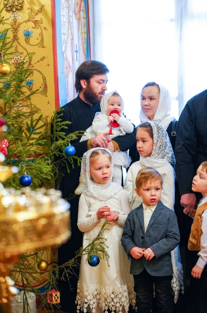 Всем вам желаю, чтобы Богомладенец Христос никогда нас не оставлял и давал нам способность, взирая на деток, быть в простоте, но, как говорит Иоанн Златоуст, не теряя разум, – потому что простота детская не должна затмевать наш разум, необходимый для воспитания наших детей. Родители всегда должны оставаться родителями, и нельзя себя низводить по отношению к деткам до уровня друга или подружки. Оставайтесь всегда теми, с которых Господь взыщет за наших деток. Воспитывайте детей в страхе Божьем, в труде, не потворствуйте их капризам. Любите их так, чтобы они стали опорой вашей старости».
