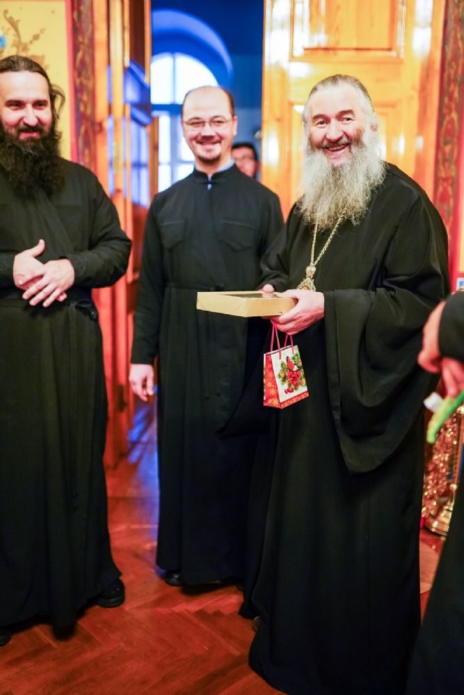 Митрополит Иоанн поблагодарил всех за теплые поздравления, пожелал священнослужителям и их семьям мира и добра. «В светлую Рождественскую ночь все мы призваны быть как дети. И праздник Рождества Христова как никогда открывает, особенно нам, старшим – пока мы, подобно детишкам, в простоте не откроем свое сердце для Богомладенца, мы не ощутим этот мир и радость как присутствие в нас Самого Господа, – отметил владыка. – И мне хочется всем нам пожелать, чтобы все члены единой большой семьи нашего духовенства жили между собой в мире, любви и согласии. Чтобы вы являли пример для всех чад Церкви: «посему узнаю, что вы Мои ученики, если будете иметь любовь между собой». Ведь в первую очередь с нас – тех, кто отдал себя на служение Богу, требуется исполнение этой святой заповеди, чтобы вы вместе собирались не только в Рождественские дни здесь, но и всегда имели между собой доброе согласие и мирное устроение.