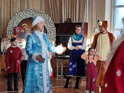 7 января на приходе храма святых апостолов Петра и Павла п. Мари-Турек, по благословению настоятеля храма протоиерея Николая Полежайкина, активные прихожане и родители воспитанников воскресной школы показали театрализованное представление «Рождественский колобок».