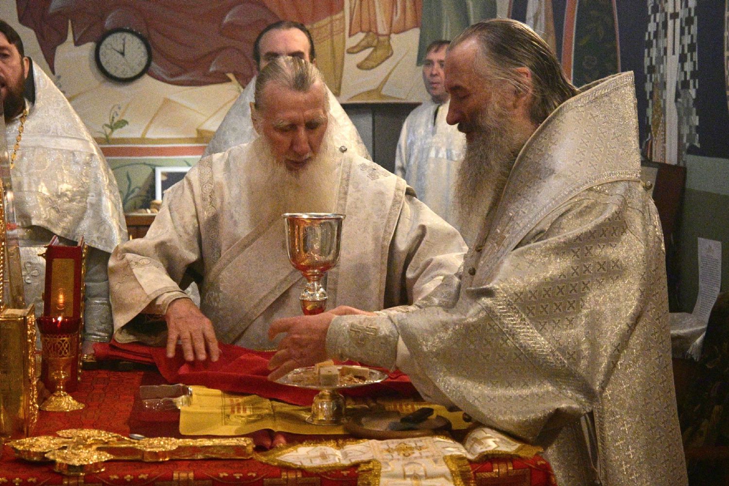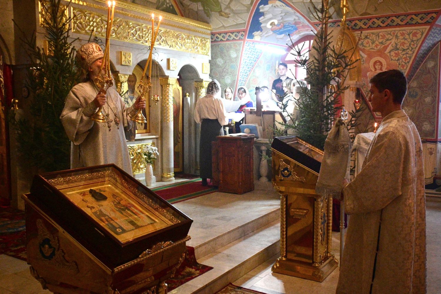 Его Высокопреосвященству сослужили секретарь Йошкар-Олинского епархиального управления иеромонах Серафим (Пасанаев), настоятель Вознесенского собора г. Йошкар-Олы протоиерей Евгений Кутырев, благочинный Йошкар-Олинского церковного округа протоиерей Андрей Норкин, клирики Вознесенского собора и протодиакон Михаил Козловский. Песнопения исполнял хор Троицкого храма под управлением Анны Ярошевич.