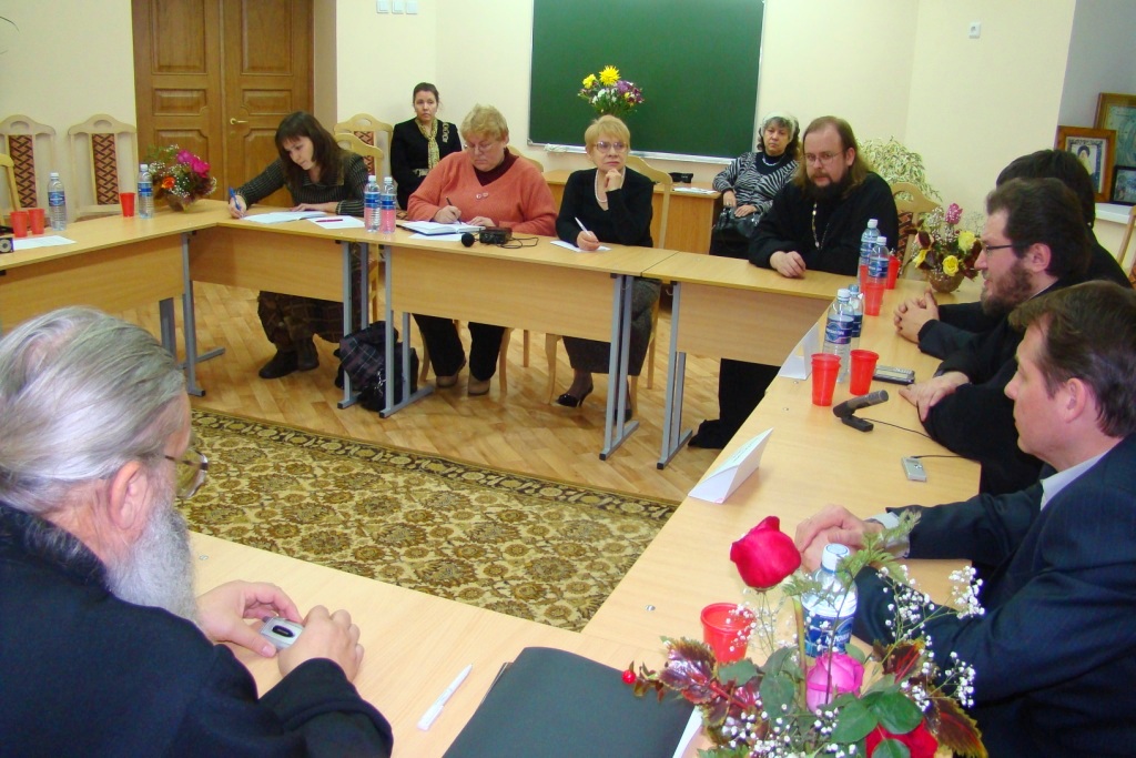 На встречу с московскими гостями, которая состоялась в пресс-центре нового Православного центра, собрались журналисты республиканских СМИ. После вступительного слова отца Александра о целях введения в общеобразовательных школах предмета «Основы православной культуры», гостям из Москвы было задано множество вопросов, задевающих самые разные аспекты внедрения нового предмета.