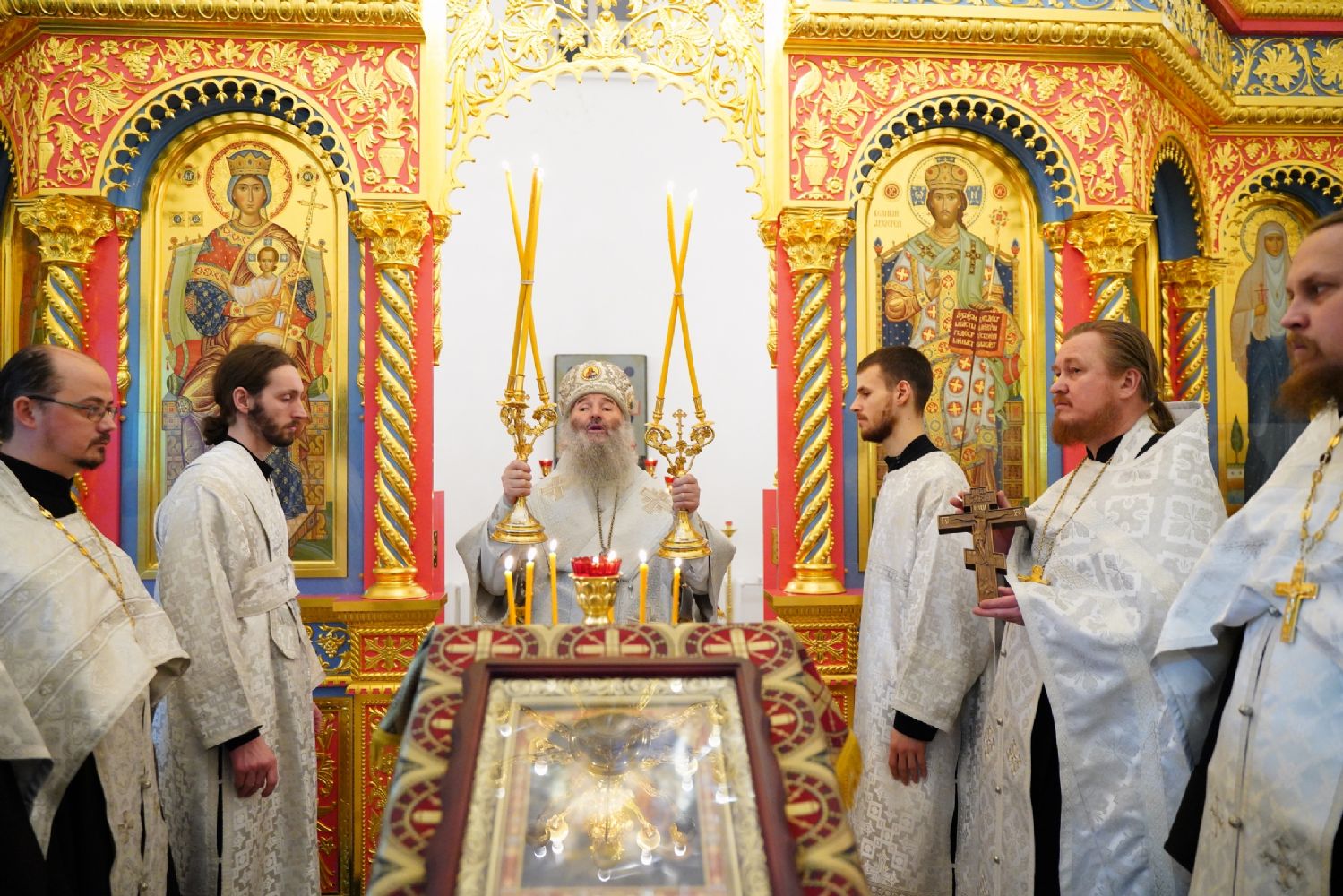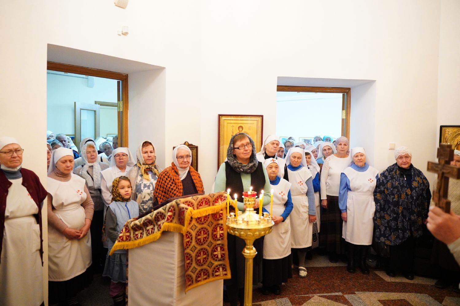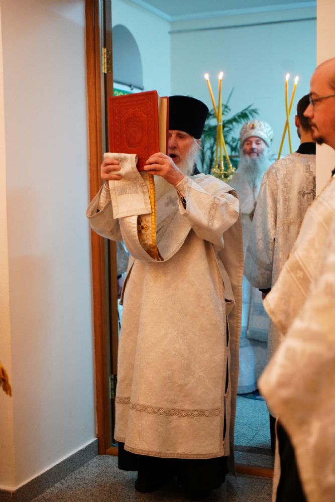 За праздничной вечерней митрополиту Иоанну сослужили ключарь Благовещенского кафедрального собора протоиерей Сергий Поглазов, духовник сестричества милосердия иерей Константин Домрачев, руководитель епархиального отдела социального служения и церковной благотворительности иерей Алексий Михеев и сотрудник отдела иерей Александр Староверов. Богослужебные песнопения исполнял хор сестричества под управлением Елены Яровиковой.
