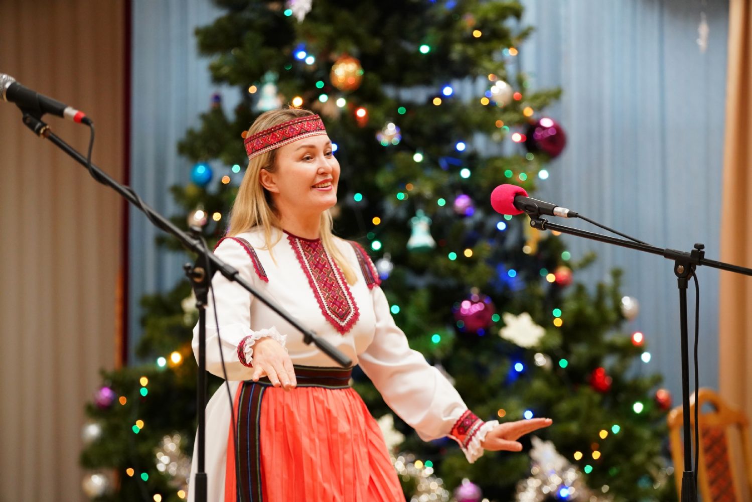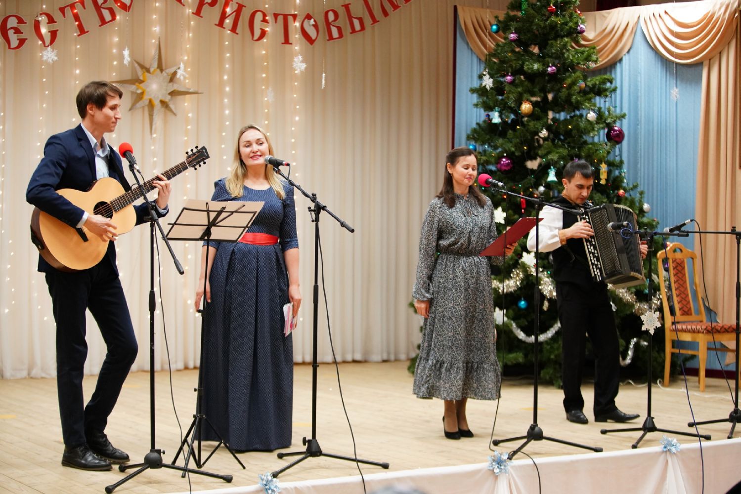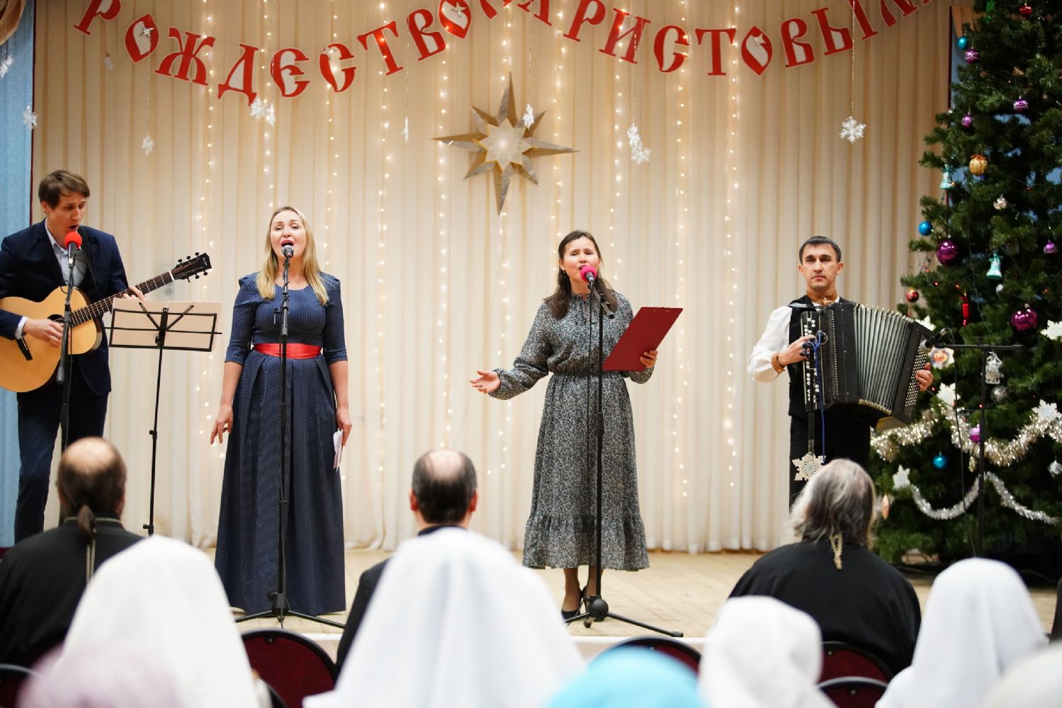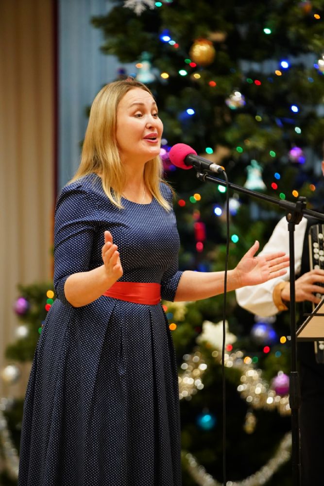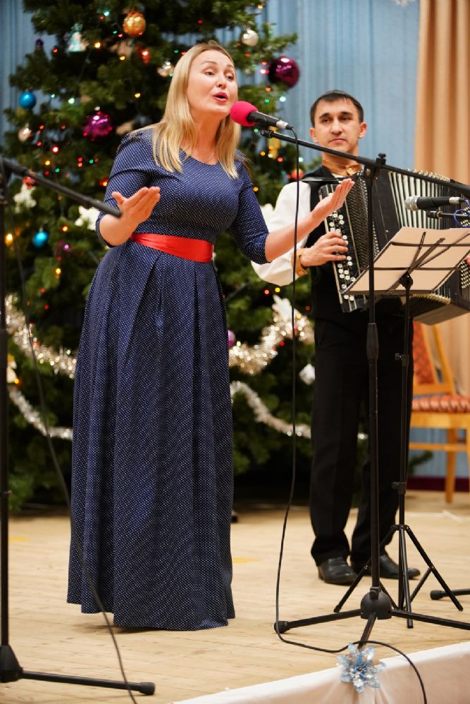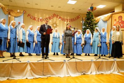 Концертная программа, которую вели актриса республиканского ТЮЗа Любовь Купсольцева и артист театра им. Шкетана Алексей Тетерин, началась с выступления хора сестричества под руководством регента Ларисы Максимовой – они исполнили рождественские песни и колядки.