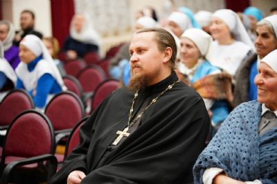 После вечерни митрополит Иоанн со священством посетил традиционный Рождественский концерт сестер милосердия в актовом зале Православного центра.