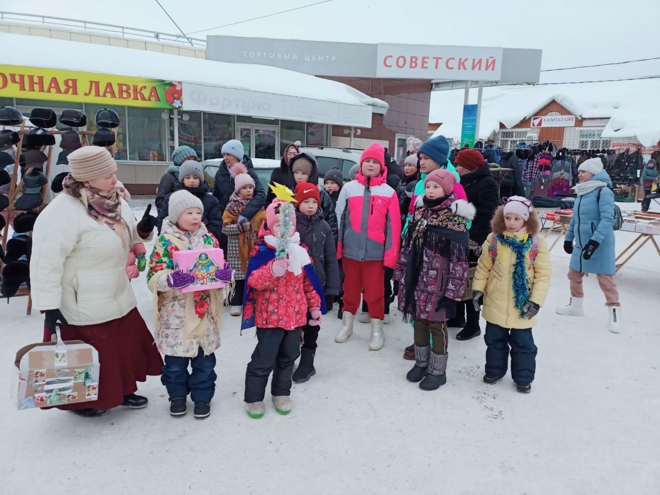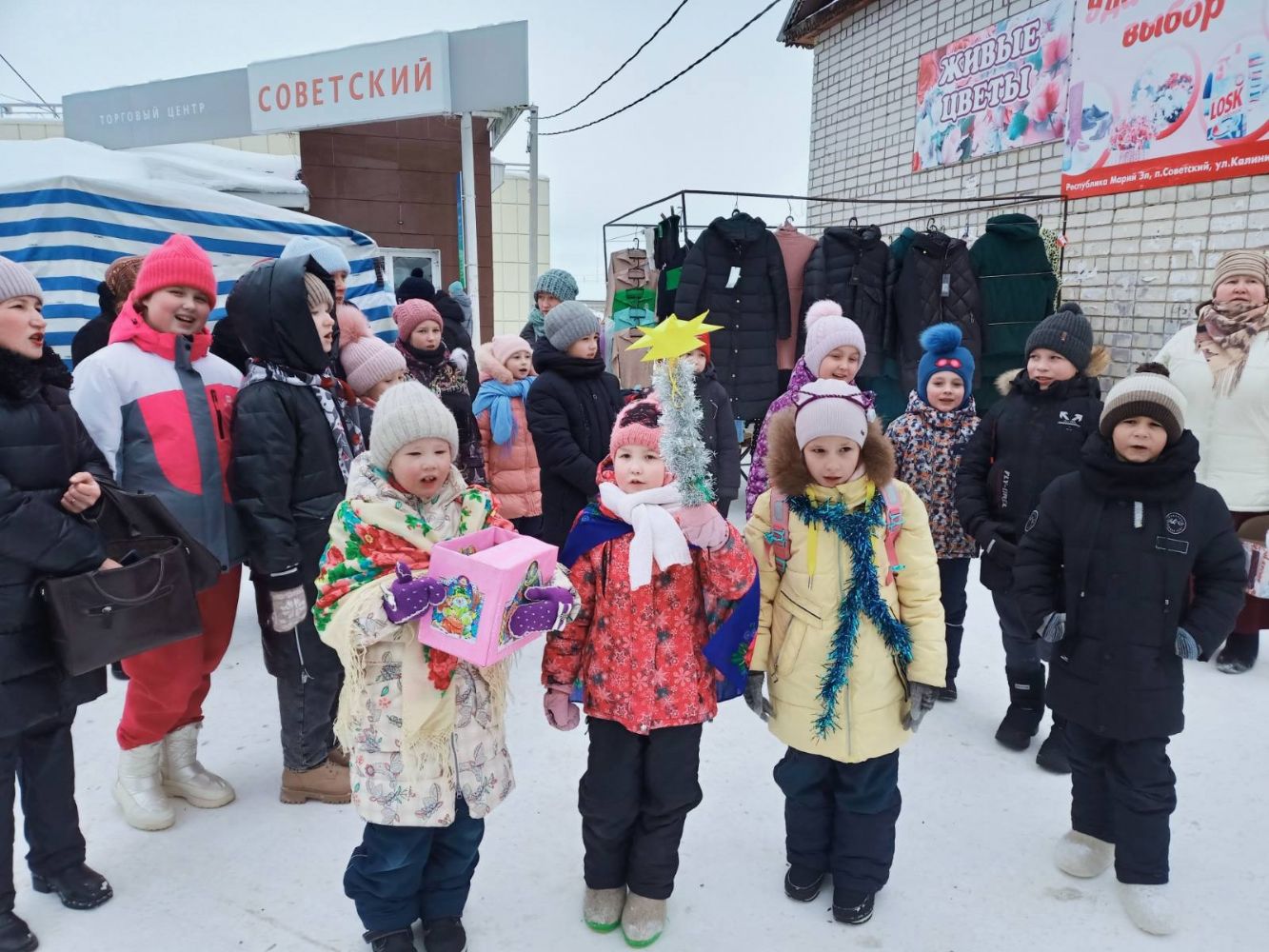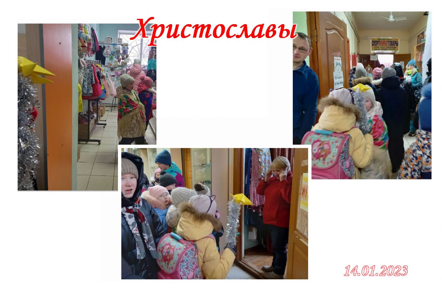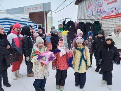 Как правило, по субботним дням в поселке проходит ярмарка, куда собираются жители Советского и окрестных сел и деревень, приезжают продавцы из других районов. Вот и 14 января день был многолюдный. Христославы с Рождественской звездой шли по улице, поздравляя прохожих с Рождеством, прошли по торговым рядам субботней ярмарки, временами останавливались, пели тропарь, колядки и возглашали добрые пожелания людям. В ответ люди улыбались, подходили, благодарили, одаривали детей гостинцами, вносили пожертвования на строительство храма.