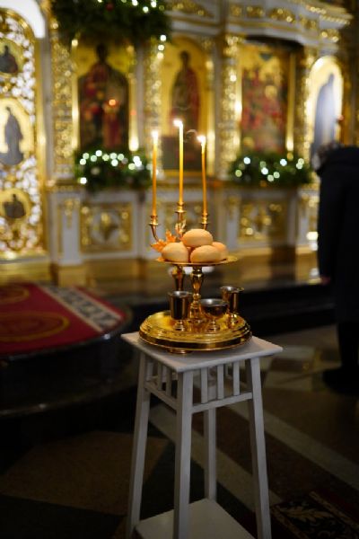 На литии освящались хлебы, елей, вино и пшеница. На утрени после чтения Евангелия верующие помазывались освященным елеем.