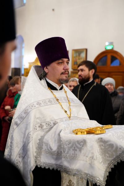 Владыке сослужили секретарь Йошкар-Олинского епархиального управления иеромонах Серафим (Пасанаев), настоятель храма иерей Александр Лоскутов, клирики храма иереи Никита Смирнов, Димитрий Дьяков, Евгений Симаков, Сергий Иванов и диакон Димитрий Кудряшов, а также протодиакон Михаил Козловский. Песнопения исполнял хор храма под руководством регента Наталии Поповой.