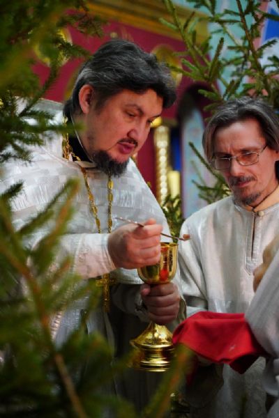 Праздник в Вознесенском соборе начался с ранней Божественной литургии и продолжился крестным ходом на Кокшагу и освящением иордани. Чин Великого освящения воды совершил настоятель Вознесенского собора протоиерей Евгений Кутырев в сослужении духовенства собора. После этого верующие смогли набрать святой воды домой.
