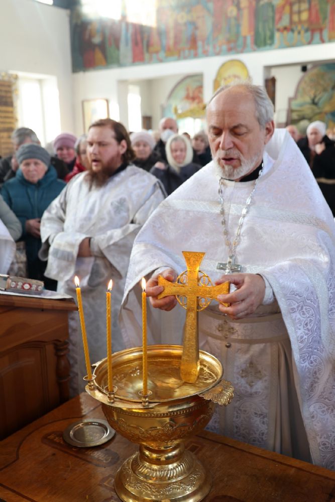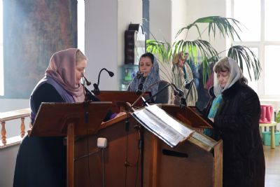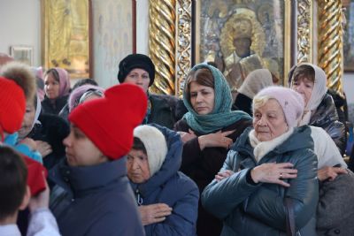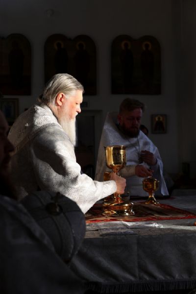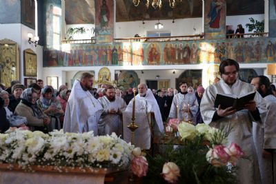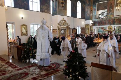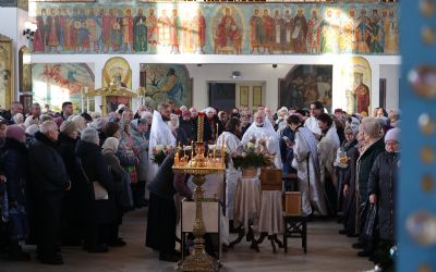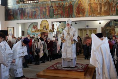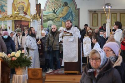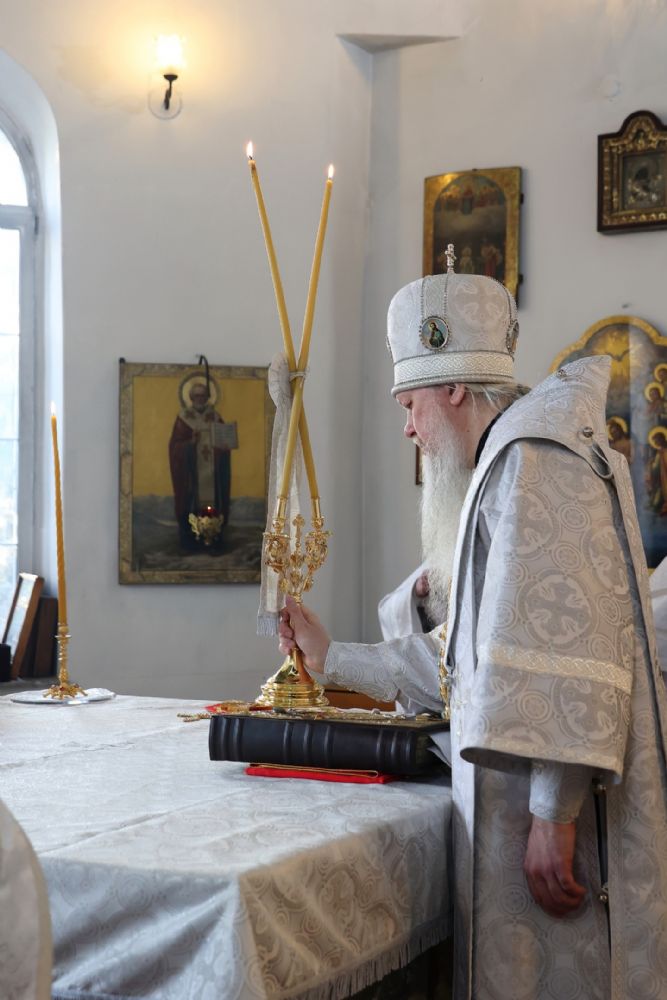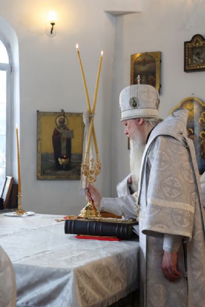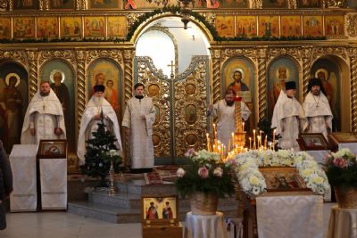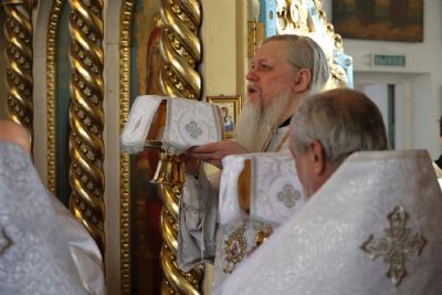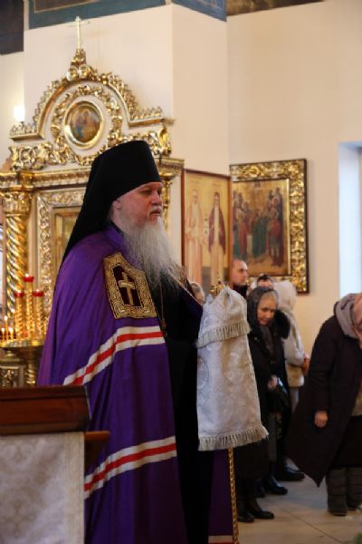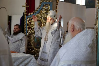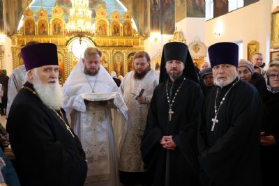 Его Преосвященству сослужили клирики собора, песнопения исполнял архиерейский хор.