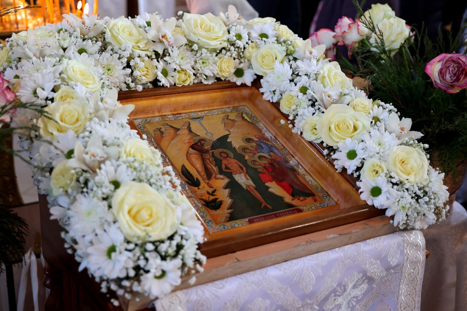 Сегодня мы с вами празднуем событие, которое касается каждого из нас. Господь освятил воды Иордана своим вхождением в них. И сегодня после окончания Божественной литургии мы будем совершать освящение воды, которая чудесным образом воспримет на себя божественную благодать. Как мы знаем, в отличие от простой воды, крещенская и освящённая на молебнах вода долго сохраняется нетленной, потому что получила от Духа Святого дар нетления. Это и есть особенное чудо, которое Господь являет в этом тленном мире, напоминая нам о том, что мы должны устремляться к нетленному и блаженному житию с Богом в мире вечном.