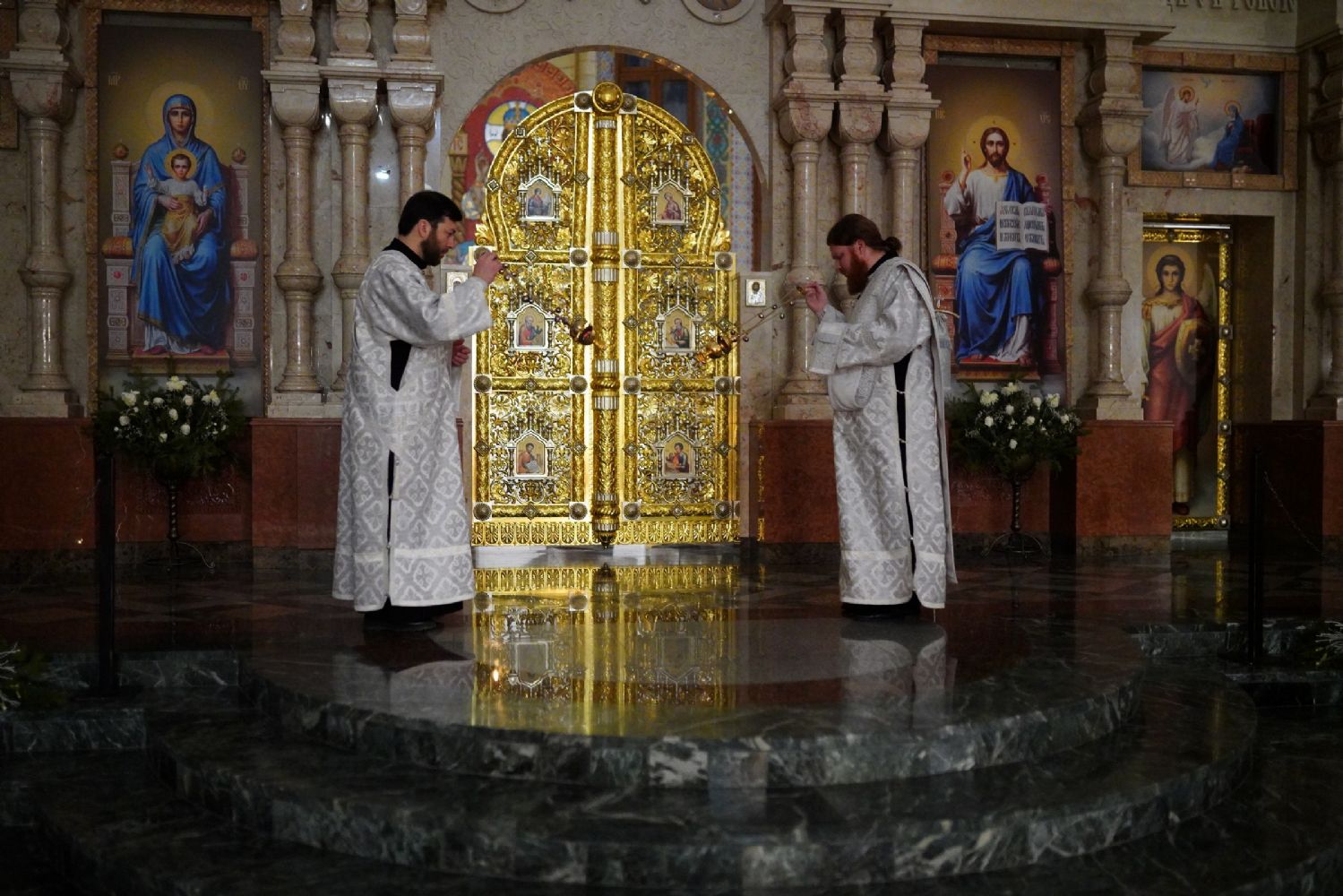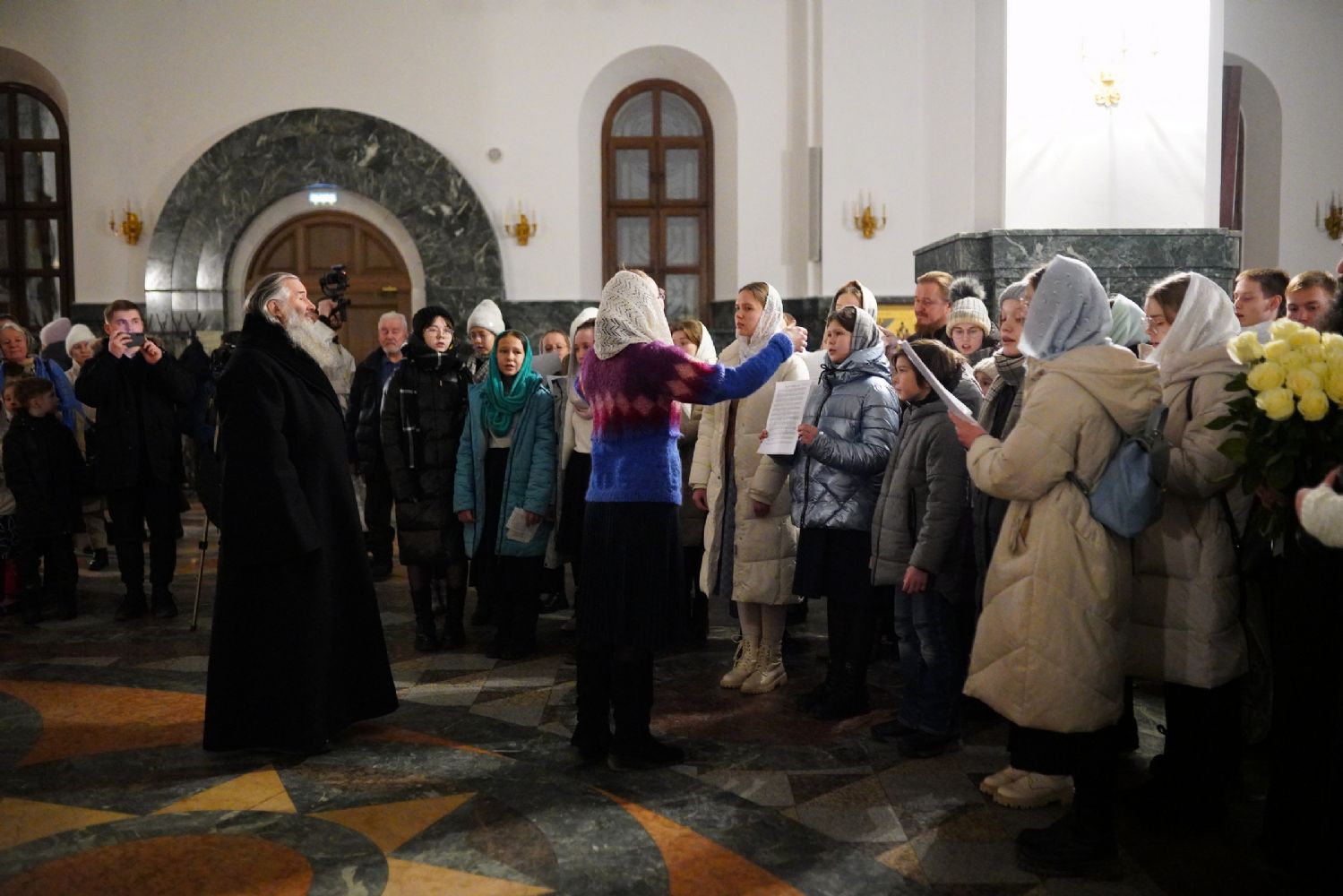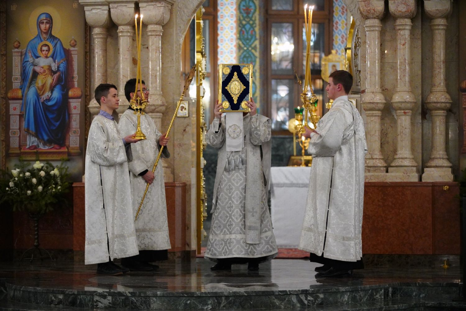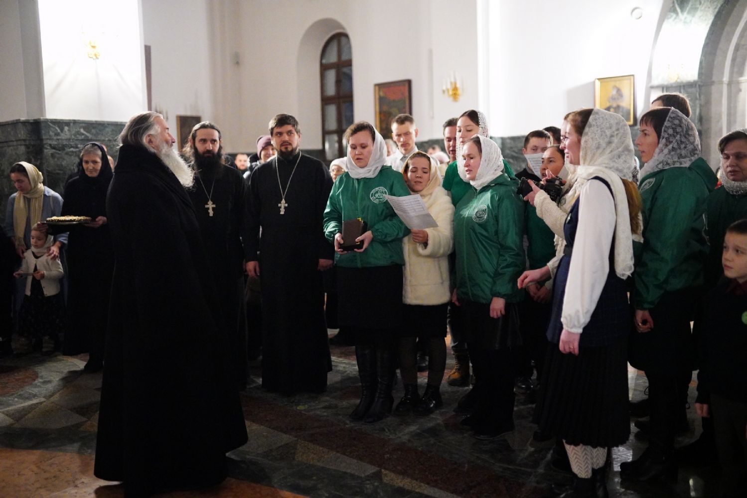 Его Высокопреосвященству сослужили секретарь Йошкар-Олинского епархиального управления иеромонах Серафим (Пасанаев), ключарь собора протоиерей Сергий Поглазов, клирики собора и протодиакон Михаил Козловский. Пел детско-юношеский хор «Благовест» под управлением регента Татьяны Черновой.