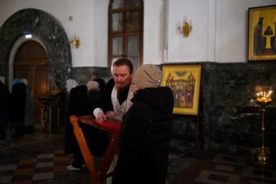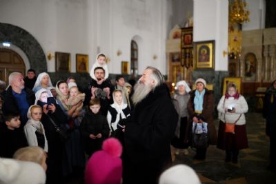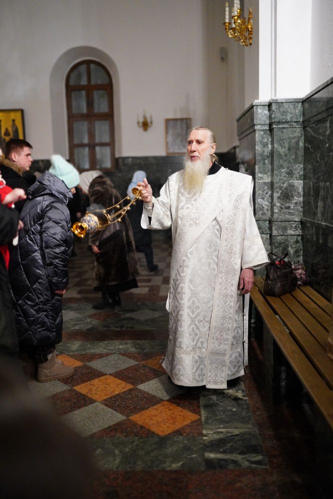 На вечерни звучали песнопения попразднства Крещения Господня. На утрени после чтения Евангелия верующие помазывались освященным елеем.