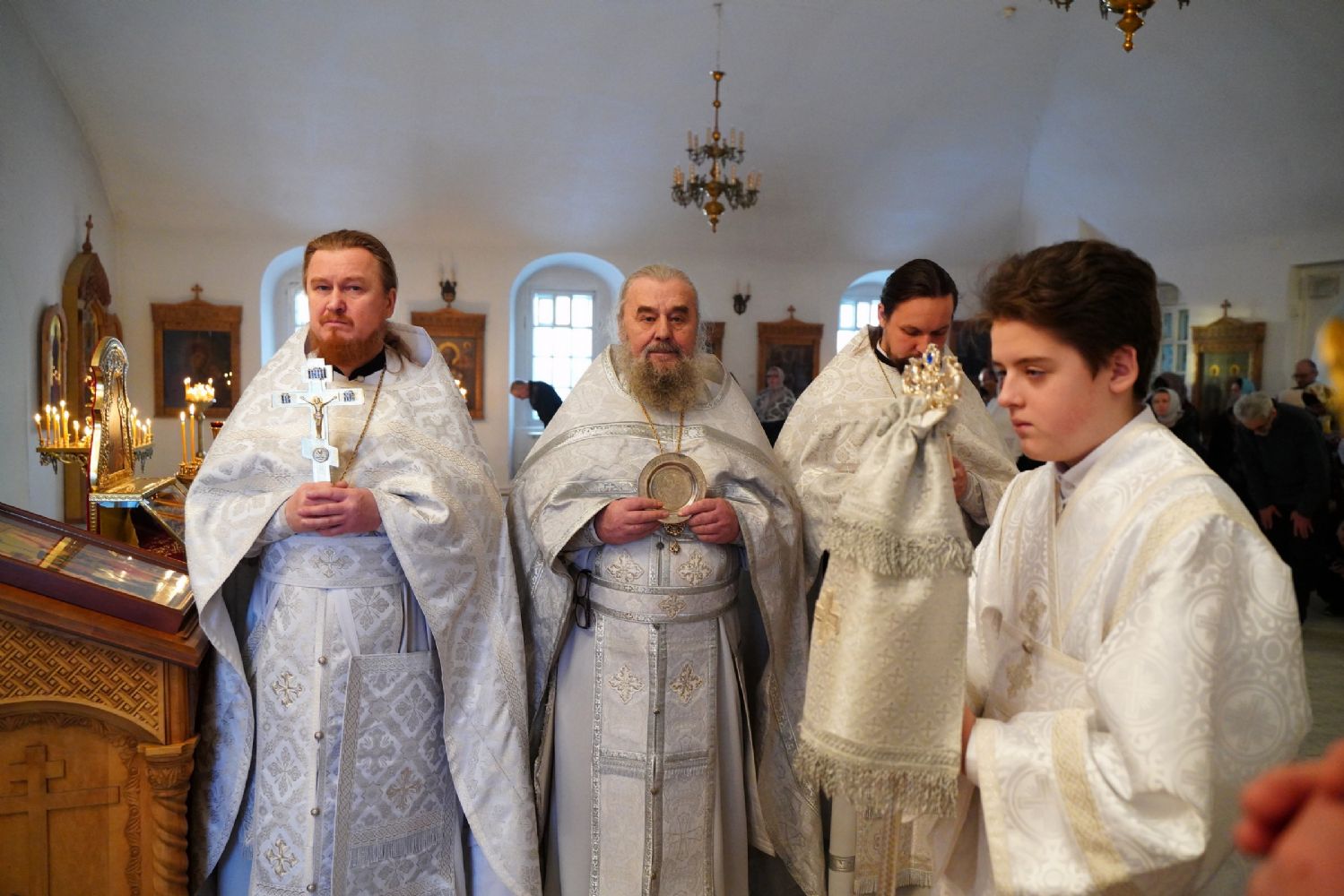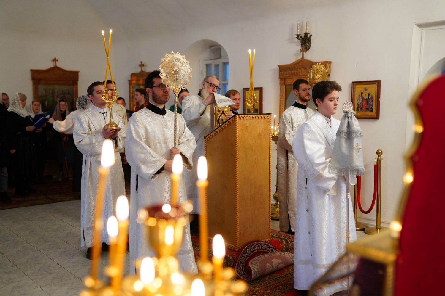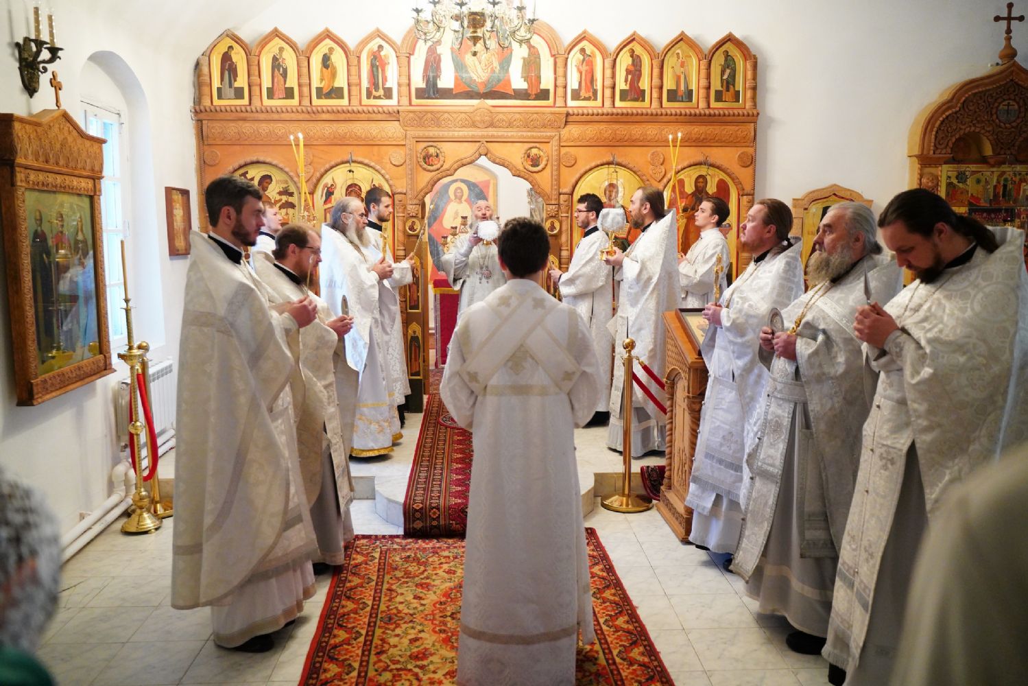 Архипастырю сослужили секретарь Йошкар-Олинского епархиального управления иеромонах Серафим (Пасанаев), ключарь Благовещенского кафедрального собора протоиерей Сергий Поглазов и клирик собора Диакон Андрей Дружинин, клирик Мироносицкого монастыря иерей Михаил Лежнин, клирик Воскресенского собора г. Йошкар-Олы иерей Игорь Коваль и протодиакон Михаил Козловский, а также священнослужители из-за пределов Марийской епархии, приехавшие поздравить владыку Иоанна с 65-летием. Песнопения исполняли два хора: «Благовест» под руководством регента Татьяны Черновой, хор Троицкого храма г. Йошкар-Олы под руководством регента Анны Ярошевич.